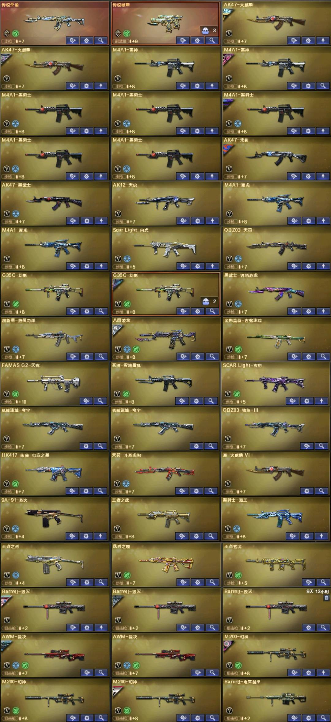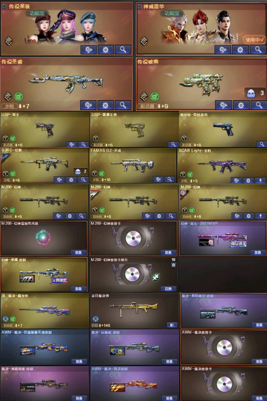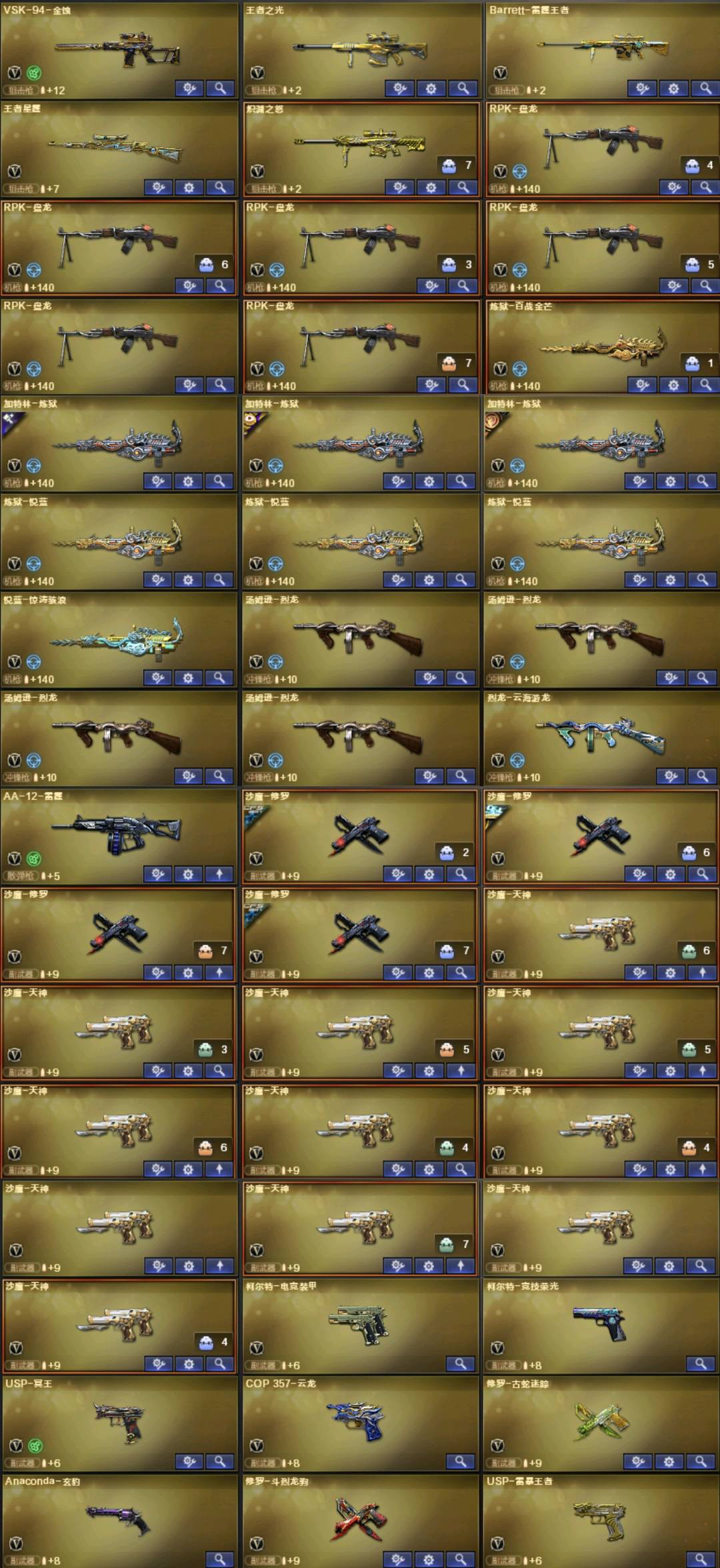 。。。。。。;USP-雷暴王者,炽芒蝶刃,沙漠玫瑰,传说星骇,隼,RPK-盘龙,G36C-幻影,