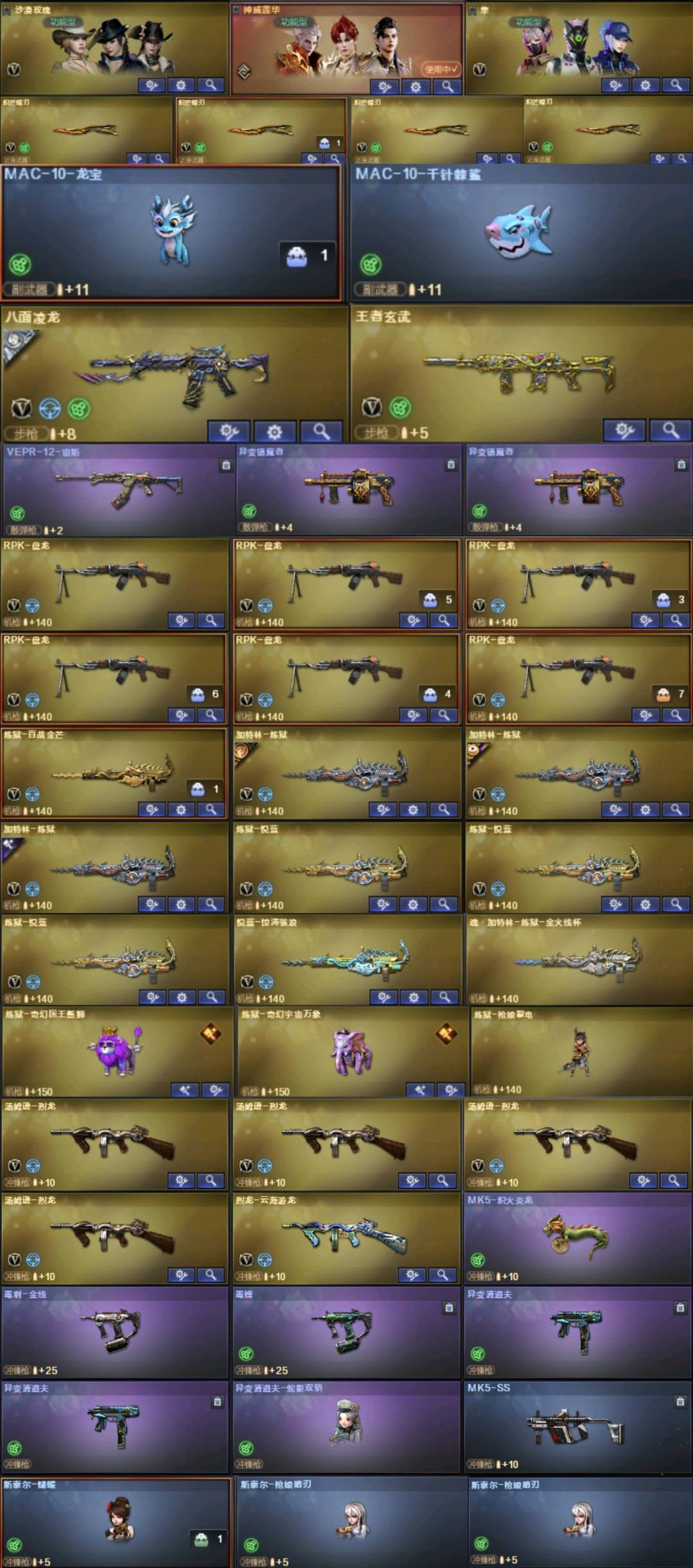 神威莲华.4蝴蝶刀.国王狮子+紫象.龙宝+鲨鱼.宙斯+镇魔.八面三件套.全皮炼狱带卡.幻神+裁决带卡
