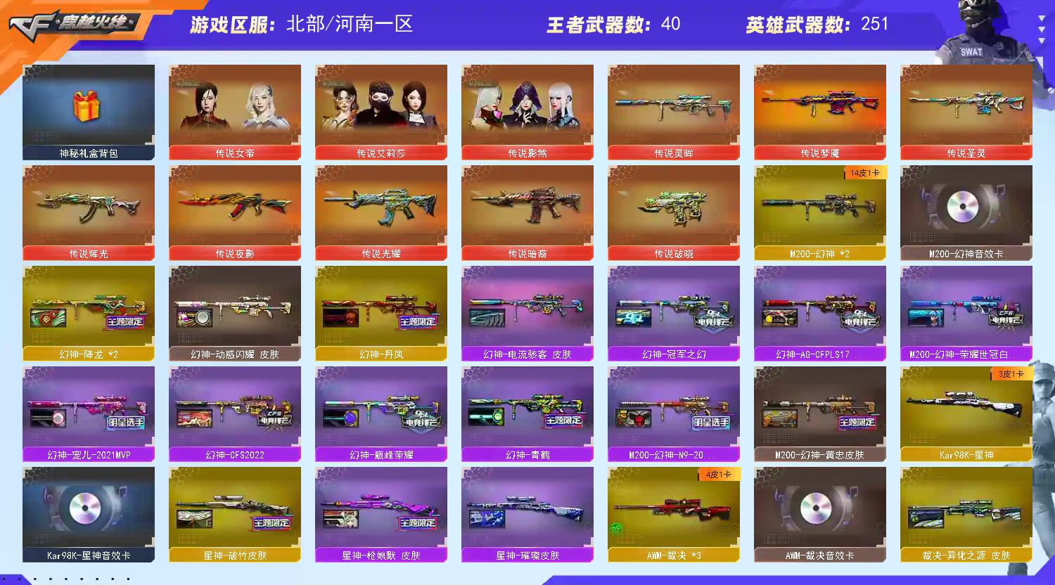 【北.部】250V氪金天花板11传说♥女帝金色礼盒♥幻神14皮带卡星神带皮带音效裁决带皮带卡♥16副♥充值10w禁止开挂♥喜欢的老板收藏哦;USP-雷暴,荣耀世冠-柯尔特,柯尔特-冠军之特,炽芒蝶刃,Knife-冠军之刃,传说影煞,传说女帝,