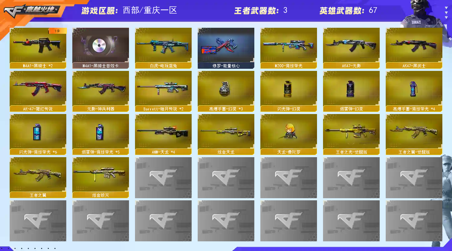 • 游戏区服:穿越火线 / 西部 / 重庆一区