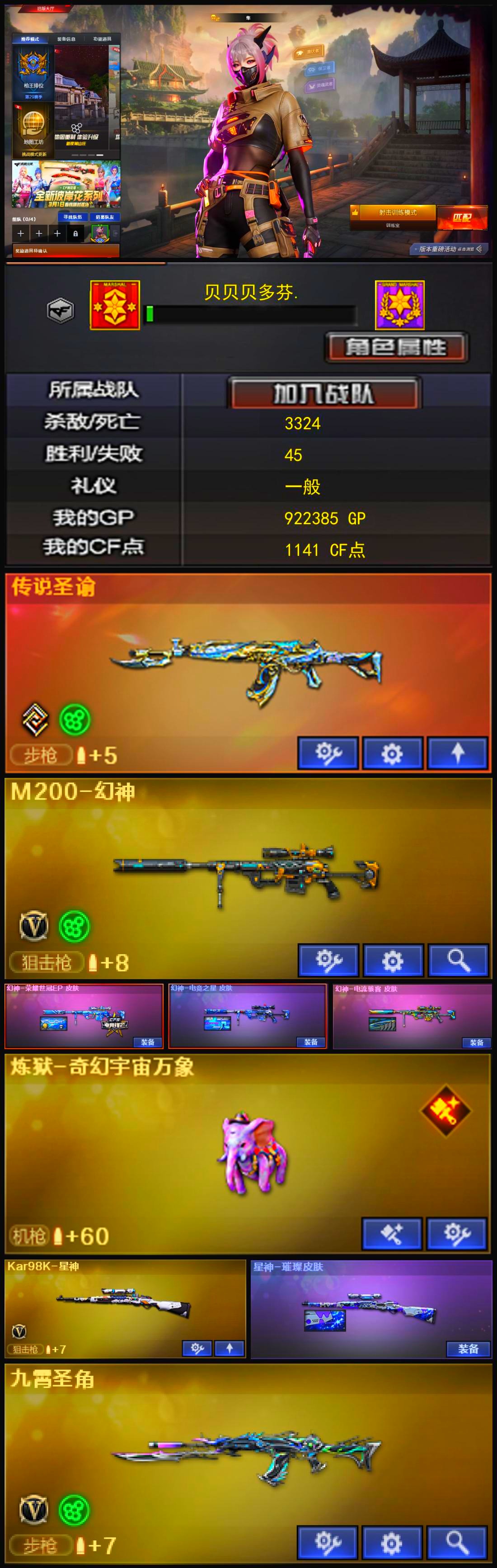 生化大满贯圣域奇幻泡泡象满级九霄裁决三件套七天罚带卡满级八面天袭玄武幻影4蝴蝶刀隼沙漠玫瑰六盘六烈;炽芒蝶刃,沙漠玫瑰,隼,RPK-盘龙,G36C-幻影,M200-幻神,加利尔ACE-天袭,