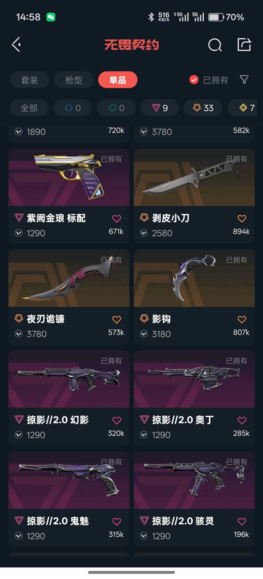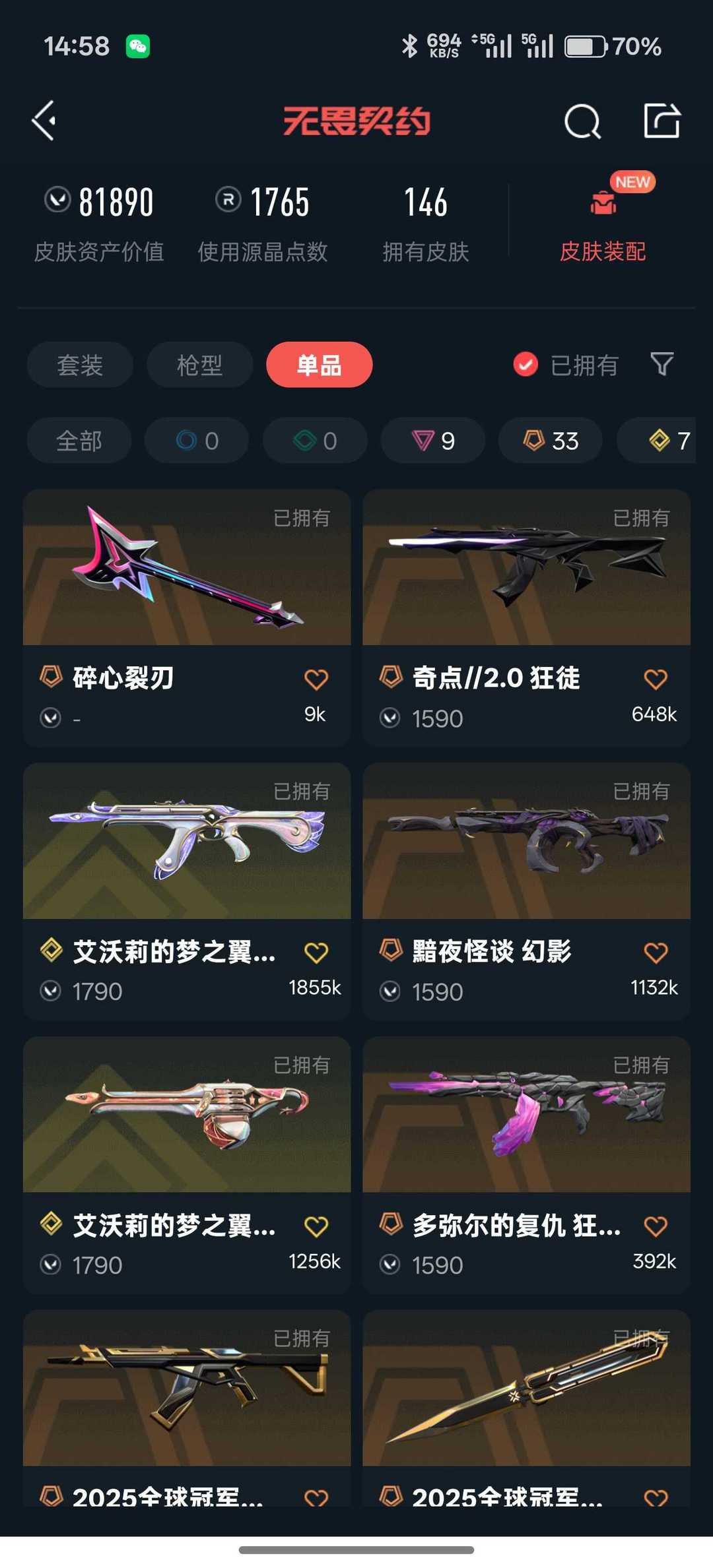可排位 冻结手协✨❤️25冠军套超时空套西部套掠影2套❤️VCT剥皮夜刃生物分子刀❤️12ak