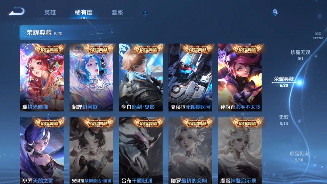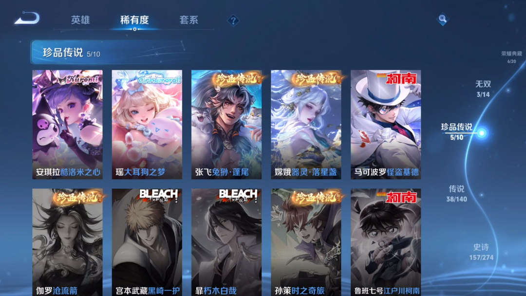 V10、550皮14水、吕布典藏-千魇归渊、云缨-神骥·越千峰、怪盗基德、伽罗星传说红枫、瑶典藏拾光映像、冥王哈迪斯、、龙年限定、齐天大圣