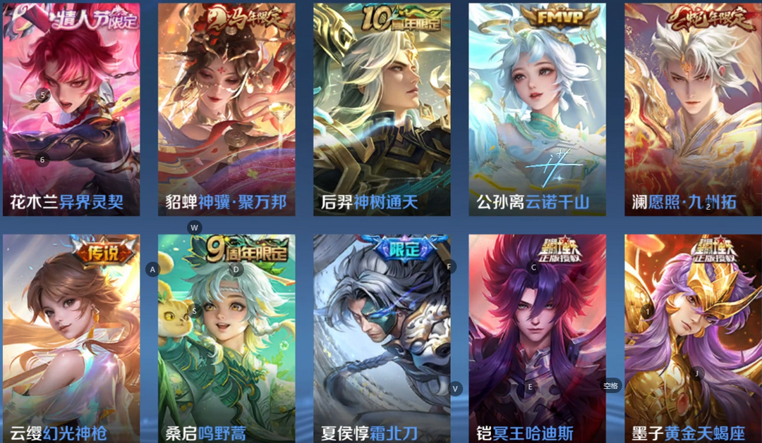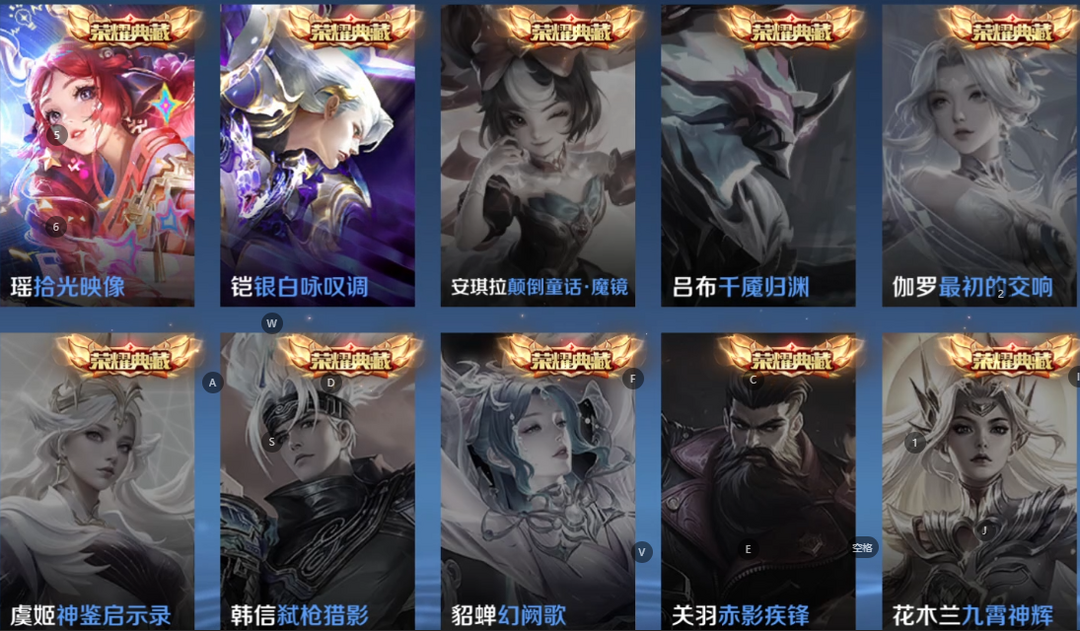 v10、12典藏530皮、【伽罗-沧流箭】云缨-神骥·越千峰、马超无双飞将、韩信典藏、马可深海之熄、青丘·九尾、枫霜尽、绯月行、前尘镜、至尊宝、天魔缭乱