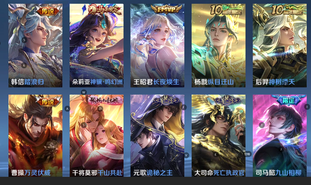 【非云直上】537满皮满典藏12星元◎鲁班新皮◎虞姬星元◎天使星元◎白金战神◎妲己绝版星元