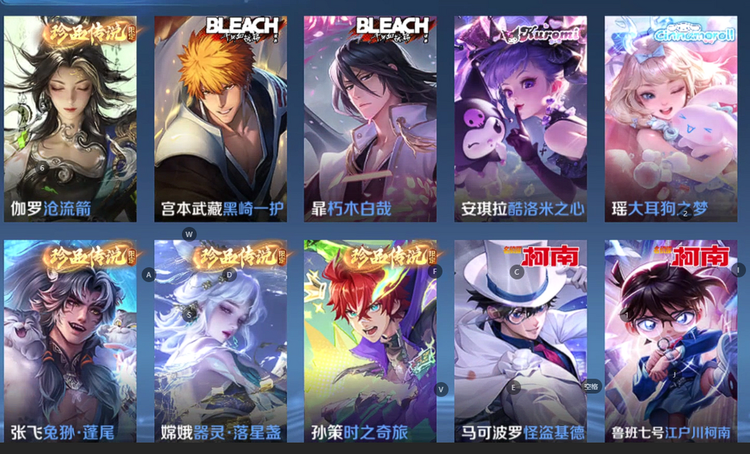 3个小兵皮肤满珍品❤沧流箭千魇归渊无相❤神罪拾光映像最初的交❤螭龙剑雪境奇遇离恨烟❤柯南基德兔狲黑崎