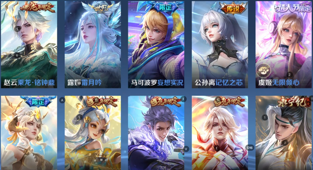 V10、550皮14水、吕布典藏-千魇归渊、云缨-神骥·越千峰、怪盗基德、伽罗星传说红枫、瑶典藏拾光映像、冥王哈迪斯、、龙年限定、齐天大圣