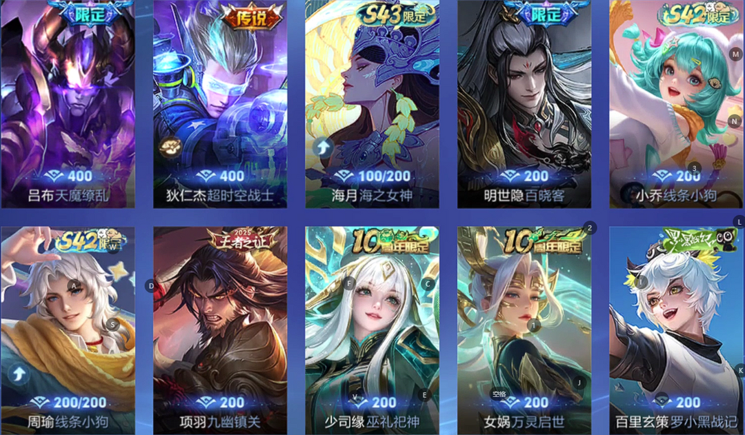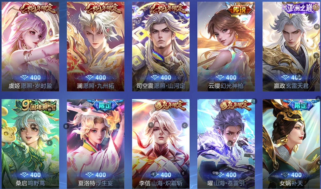 【非沄直接上号】极品V10★三历史国标★430皮★六典藏★诸葛亮新典藏★虎年五限定★鸣剑戈影★活力突击️★多限定
