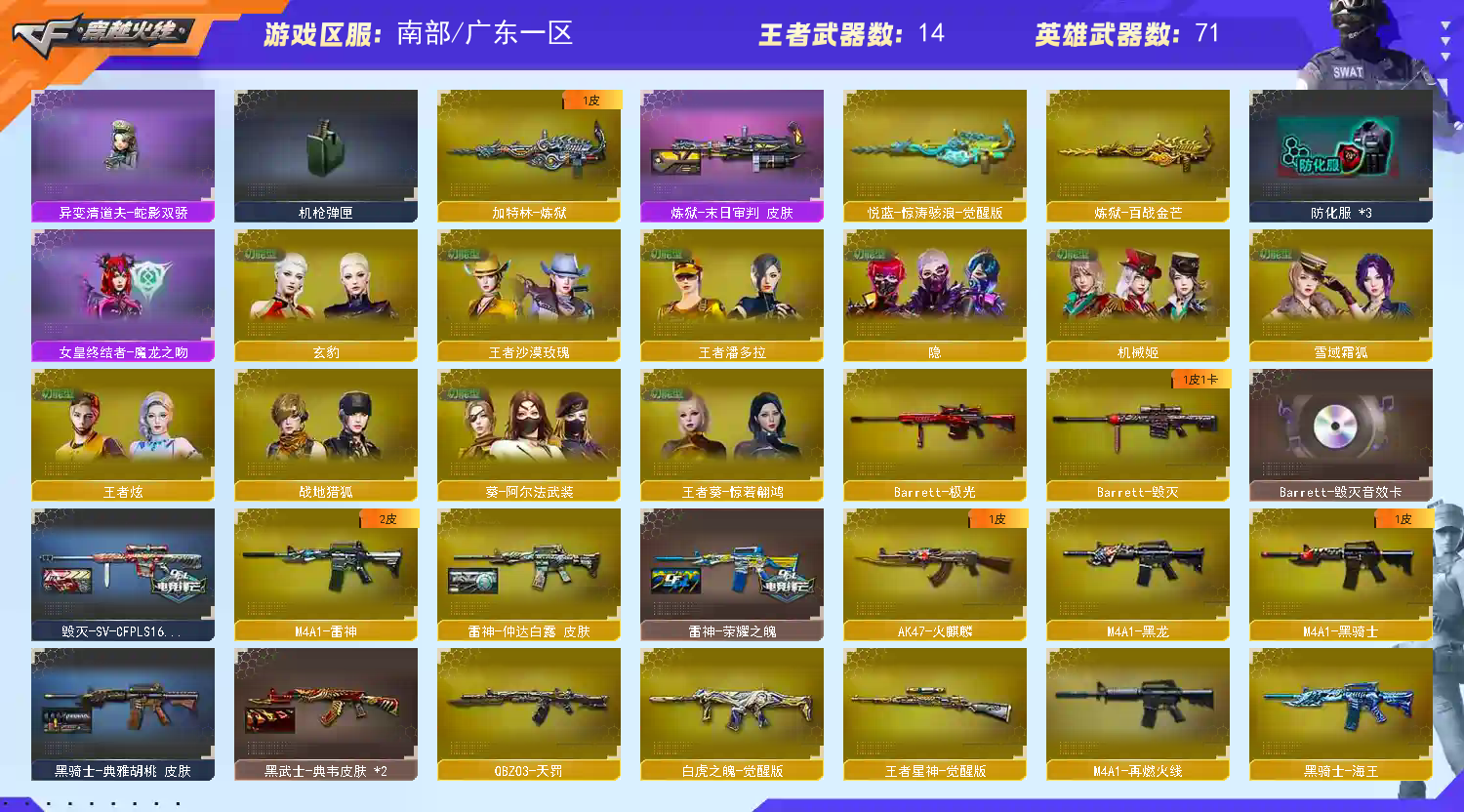 • 游戏区服:穿越火线 / 南部 / 广东一区