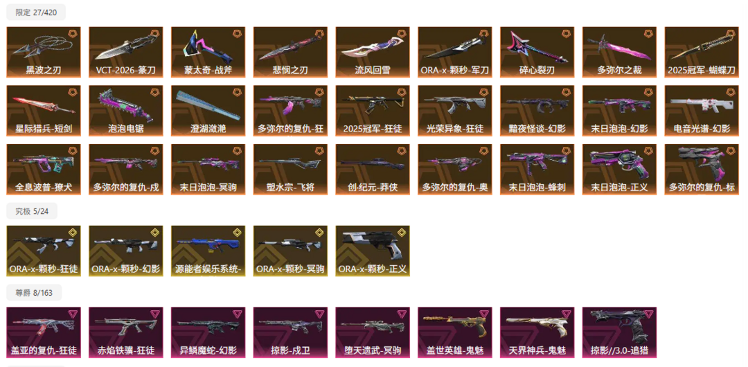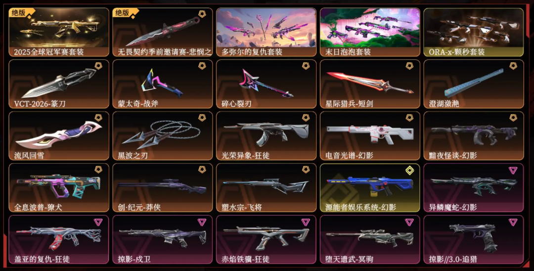 可排位⭐25冠军套/悲悯之刃/VCT篆刀/末日泡泡套/黑波之刃/塑水宗飞将/流风回雪/电音光谱幻影