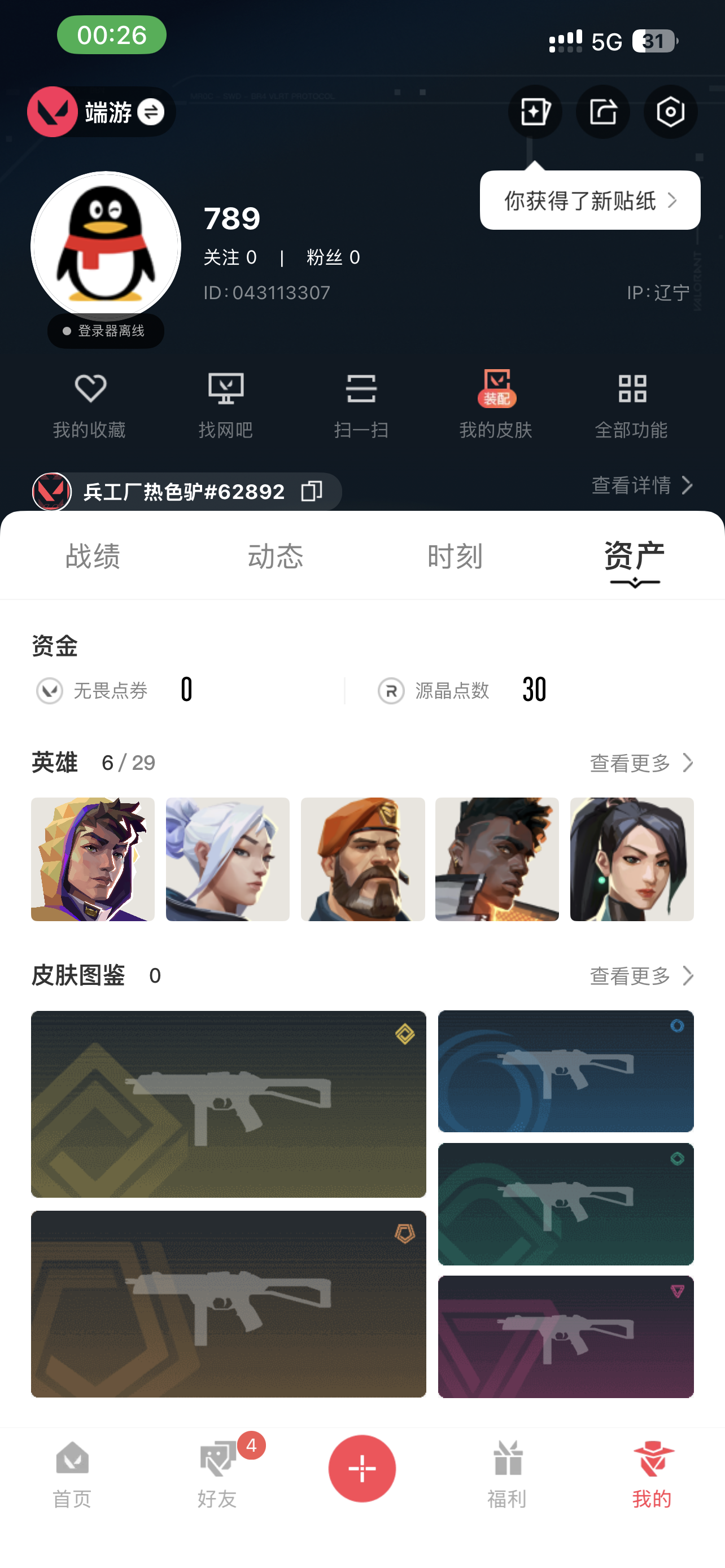 • 皮肤资产价值: 0