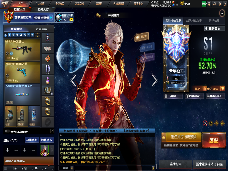 极品生化爆破丨神威莲华 奇幻国王狮 斯太尔蝴蝶 6盘6烈 3蝴蝶刀 ep全套 9主流副武器 轮椅步枪齐全 双超核名片 3枪王之王名片;USP-雷暴,柯尔特-冠军之特,炽芒蝶刃,隼,妮妮,RPK-盘龙,QBZ03-金色蔷薇,