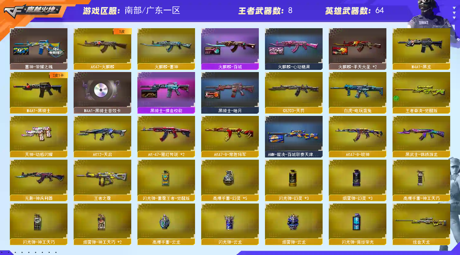 • 游戏区服:穿越火线 / 南部 / 广东一区