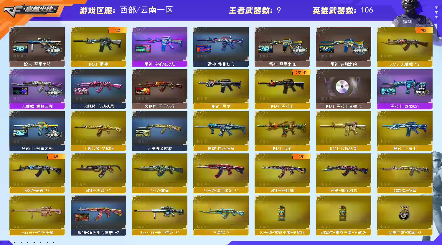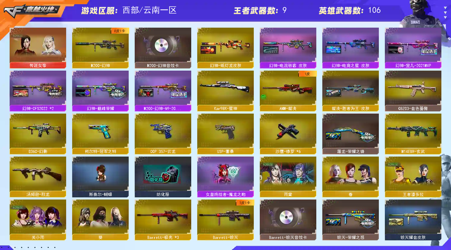 • 游戏区服:穿越火线 / 西部 / 云南一区