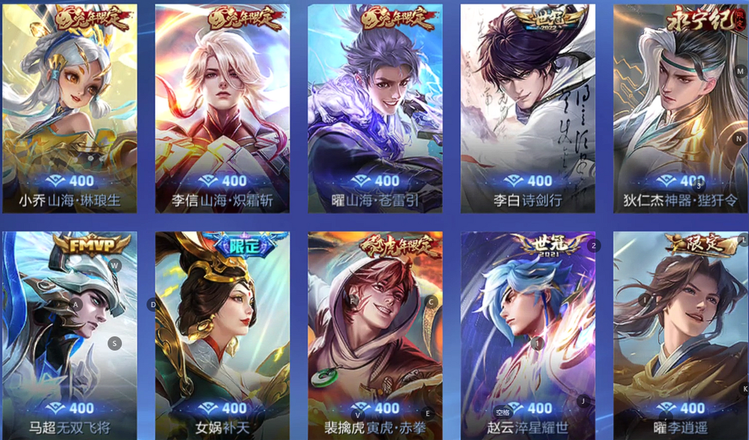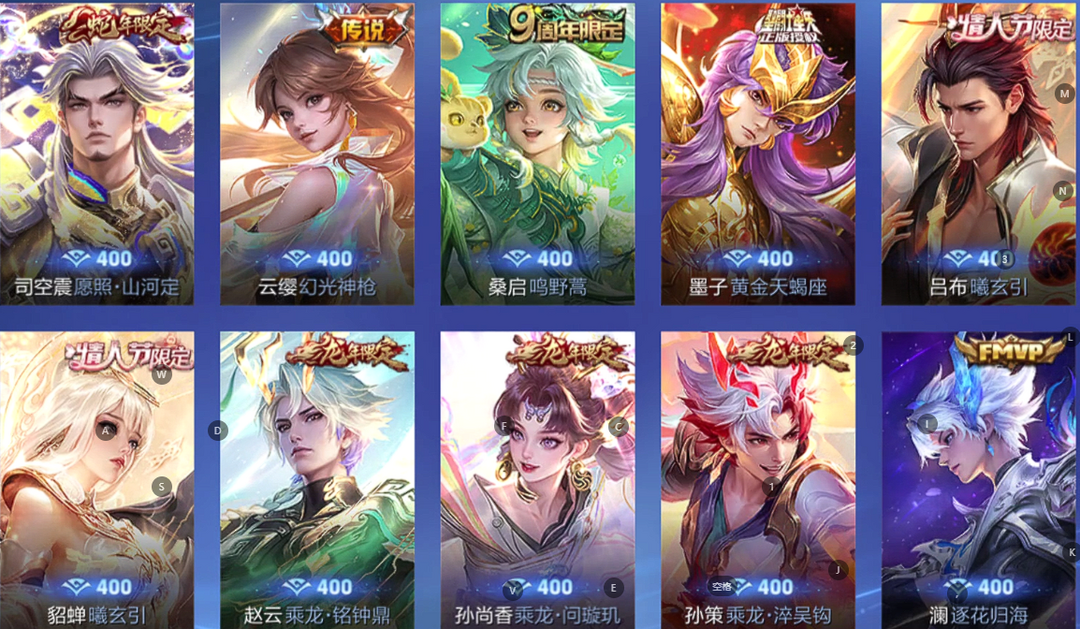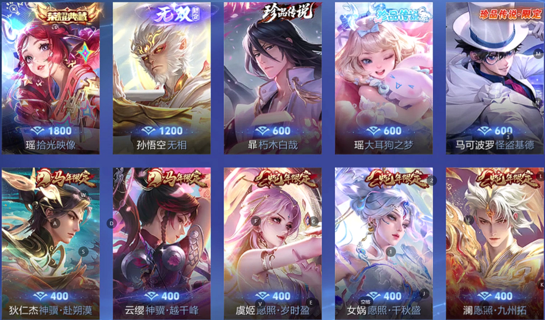 【非云直上】537满皮满典藏12星元◎鲁班新皮◎虞姬星元◎天使星元◎白金战神◎妲己绝版星元