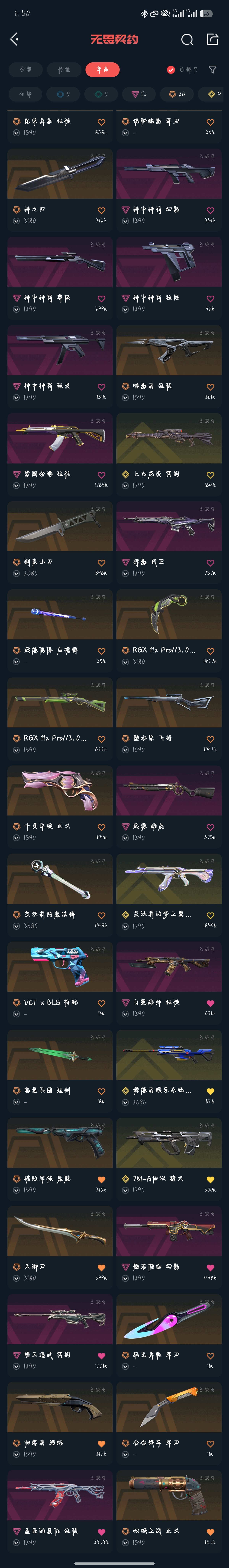 基本上玩的枪都有皮肤;剥皮小刀,起源 雄鹿,盖亚的复仇 狂徒,掠影 戍卫,噬影者 狂徒,紫阙金琅 狂徒,光荣异象 狂徒,