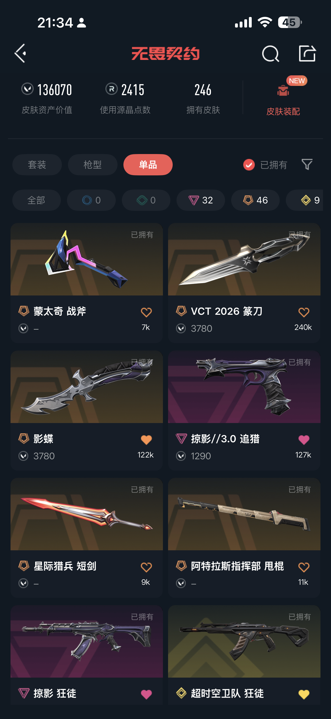 • 皮肤资产价值: 136070