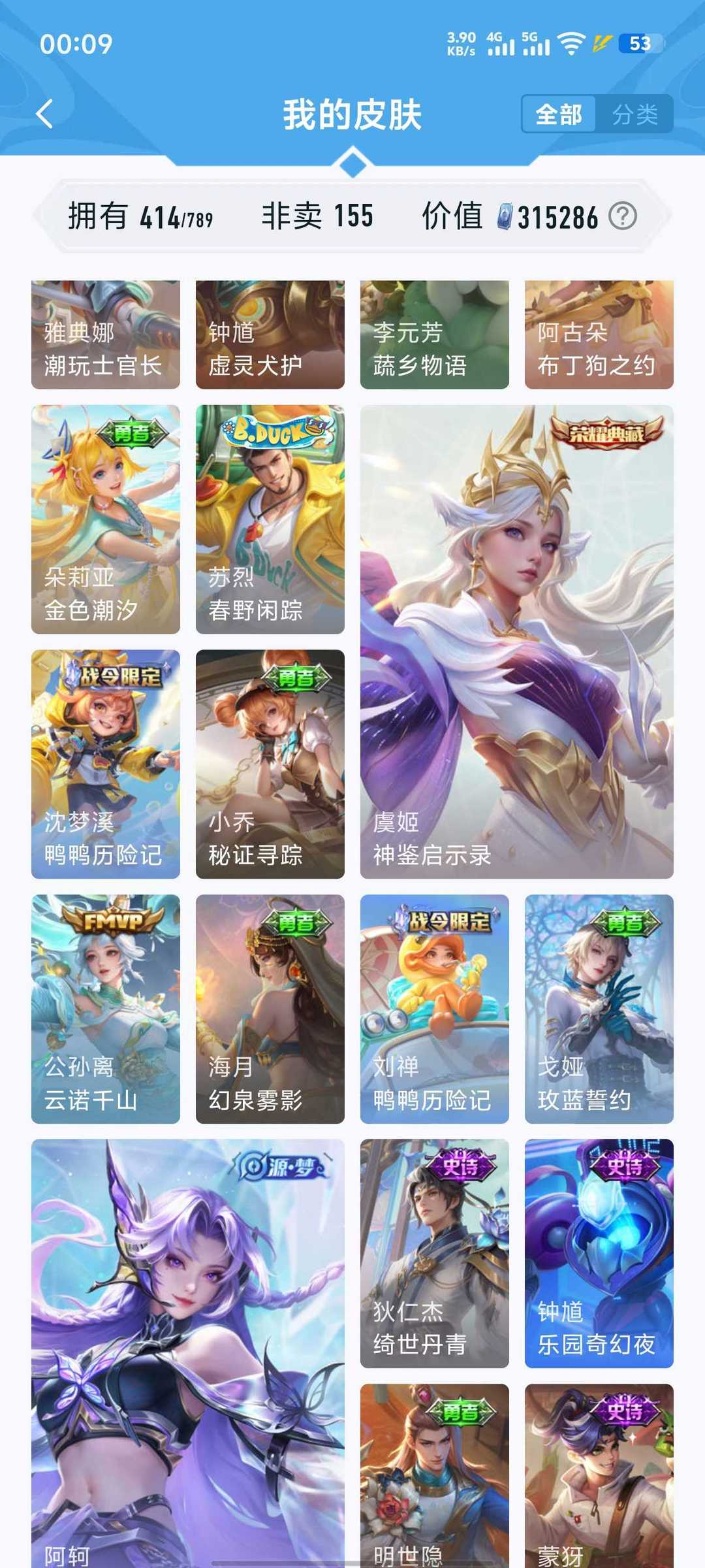 不禁言⭐️V9⭐️虞姬典藏⭐️甄姬珍品限定⭐️414皮肤⭐️详情上号自行查看