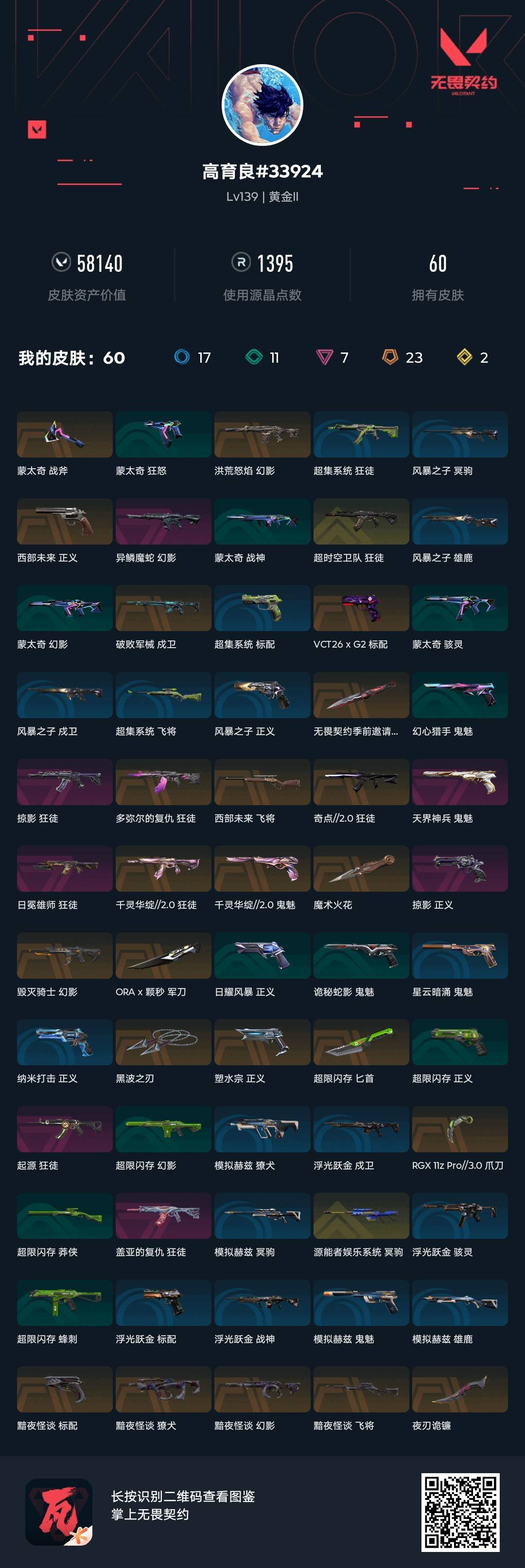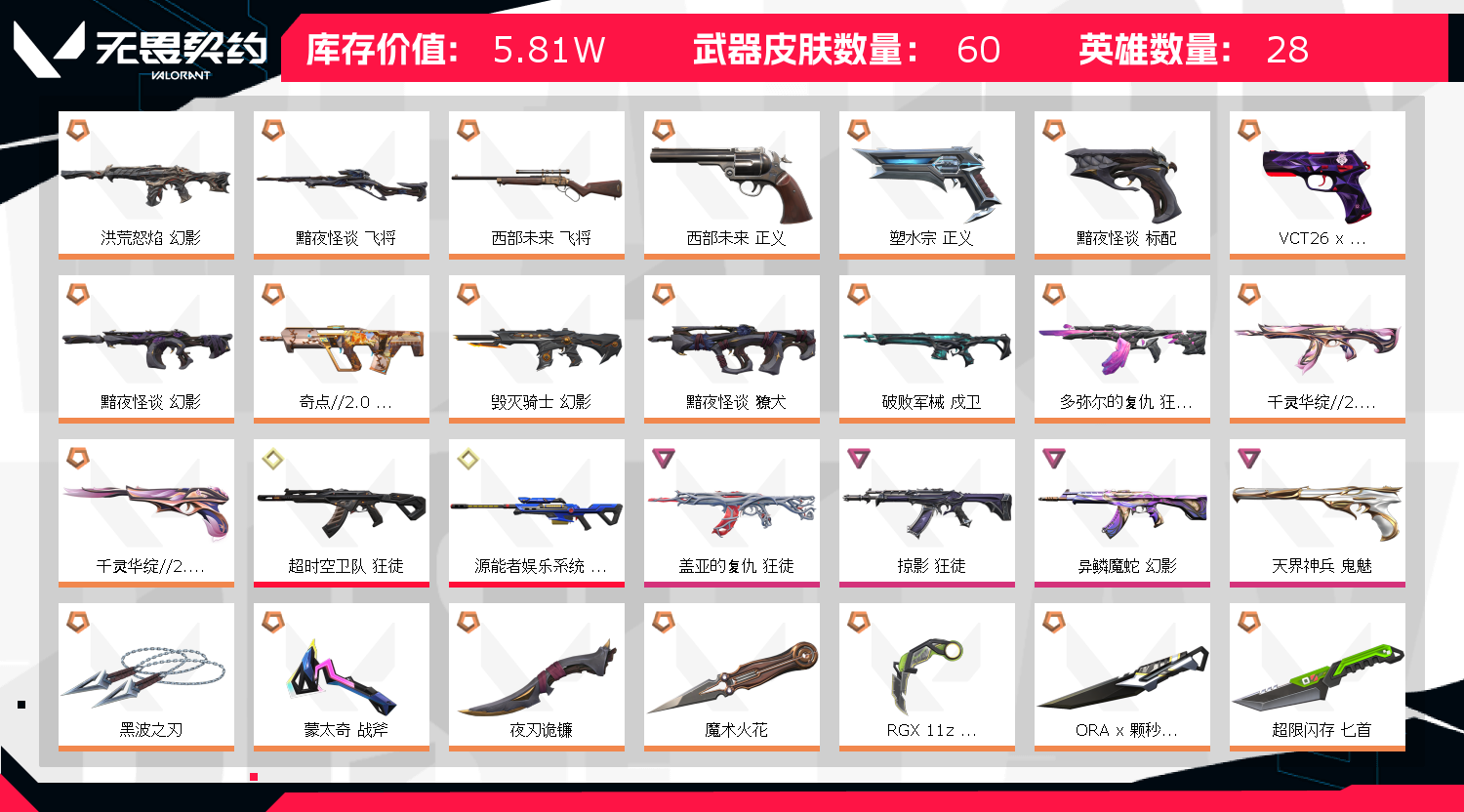 • 皮肤资产价值: 58140
