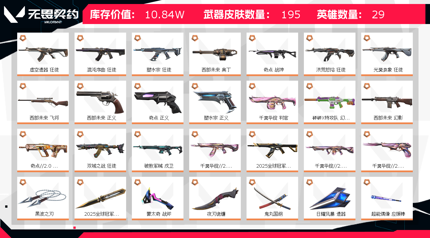 • 皮肤资产价值: 108420