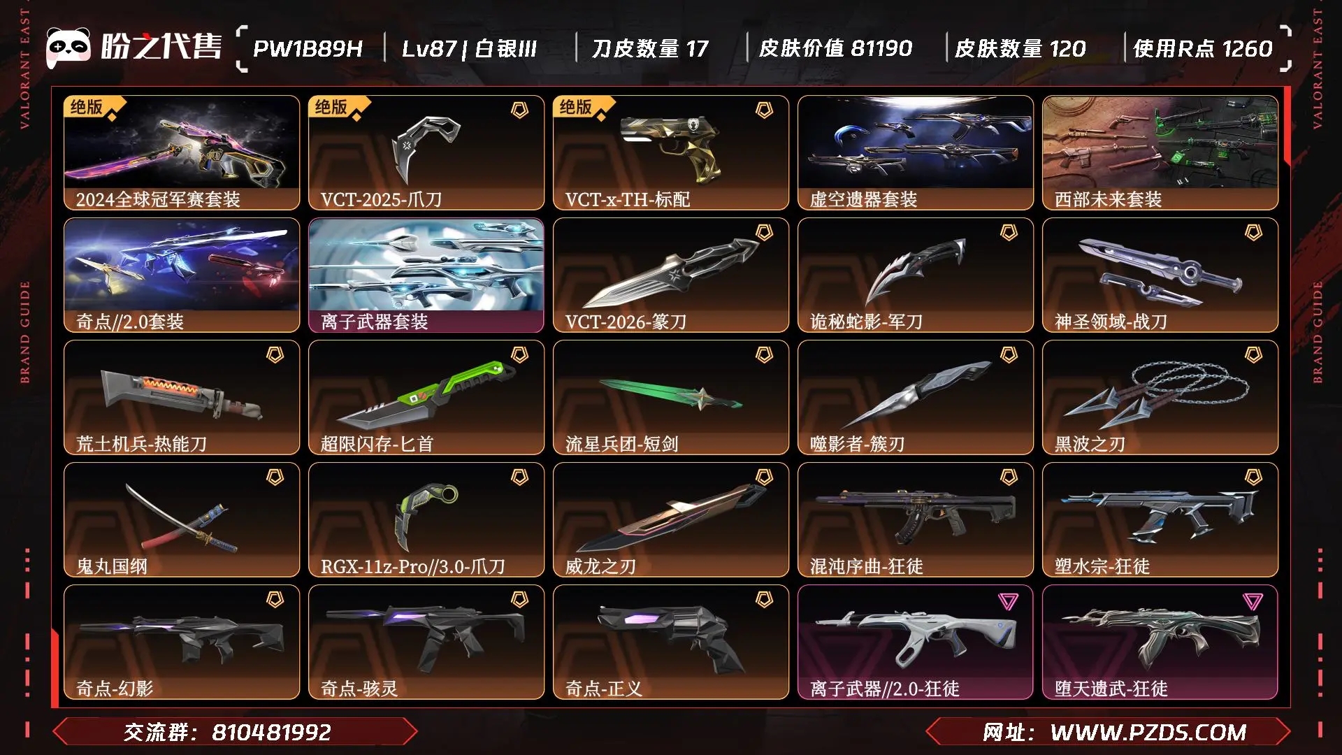 - 皮肤资产价值: 81190
