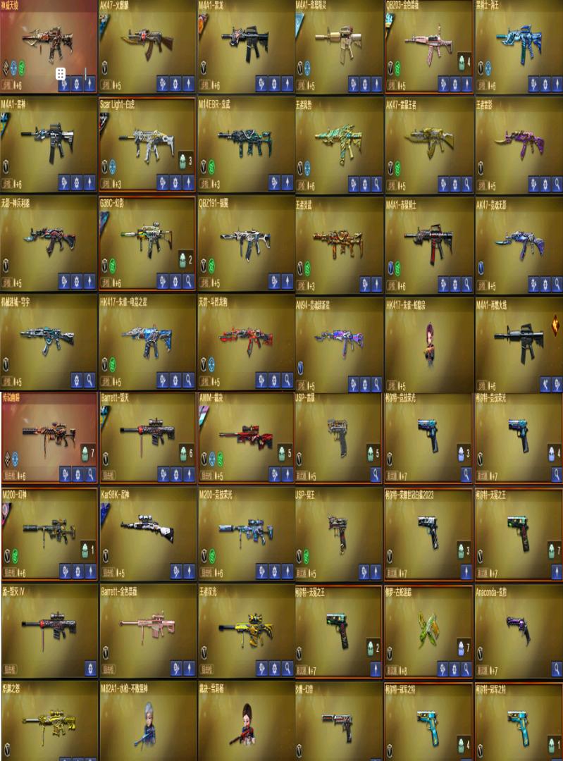 生化爆破双全装,炼狱狮子,泡泡象,蝴蝶刀✖️7,玄武✖️2;USP-雷暴,柯尔特-无冕之王,柯尔特-荣耀世冠白鲨2023,柯尔特-冠军之特,炽芒蝶刃,Knife-冠军之刃,传说星骇,