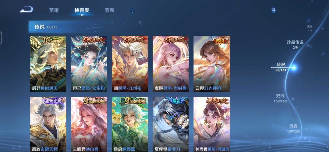 【非沄直接上号】极品V10★三历史国标★430皮★六典藏★诸葛亮新典藏★虎年五限定★鸣剑戈影★活力突击️★多限定