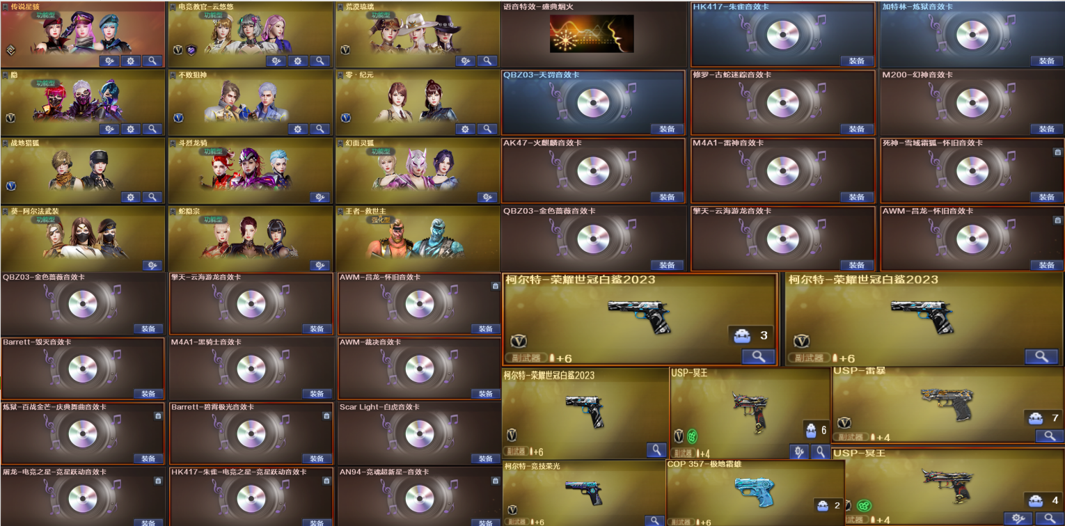 好人一生平安;USP-雷暴,柯尔特-荣耀世冠白鲨2023,传说星骇,电竞教官-云悠悠,RPK-盘龙,QBZ03-金色蔷薇,G36C-幻影,
