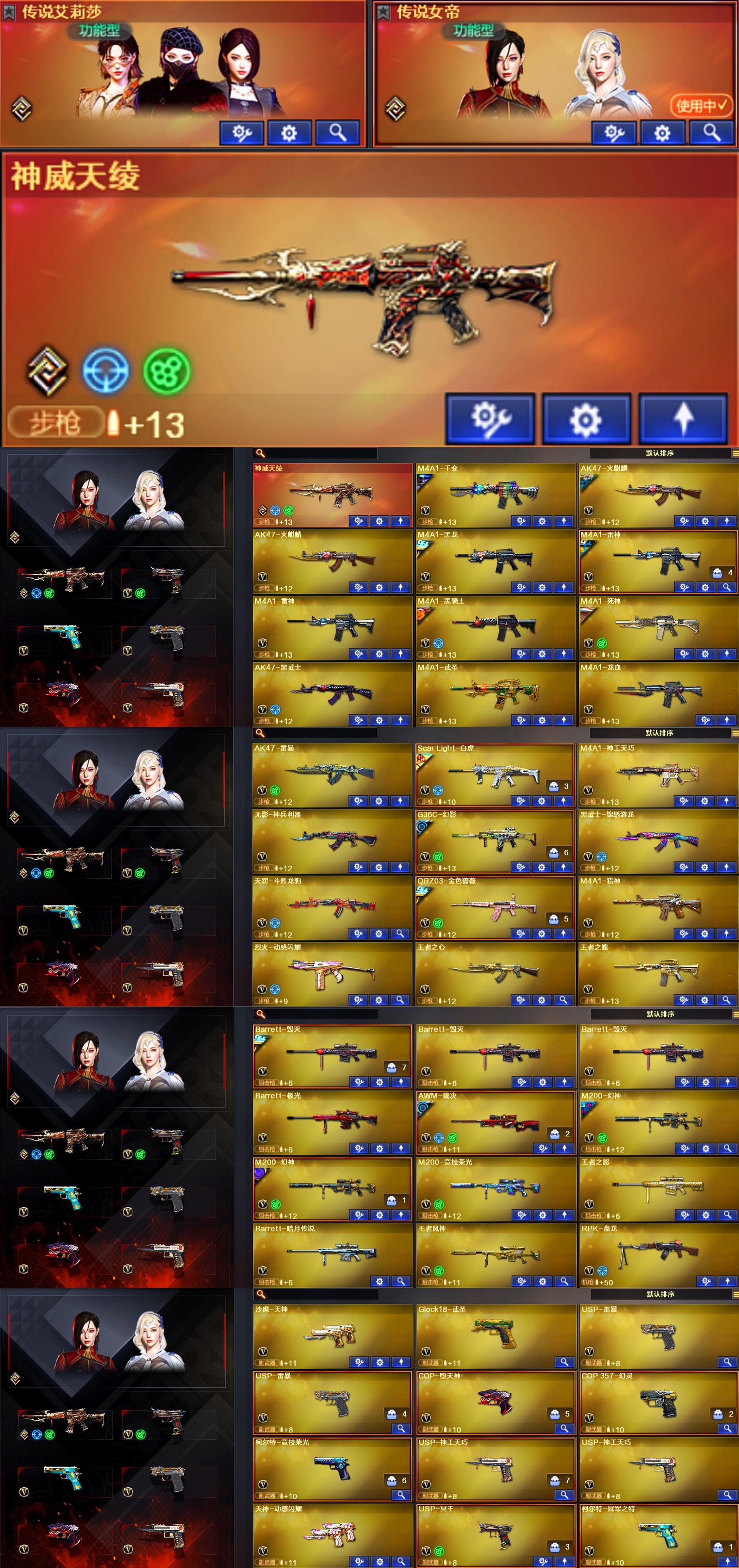 女帝艾莉莎神威天绫幻神6皮三件套裁决三件套10副武器G36C幻影白虎qbz爆破天花板