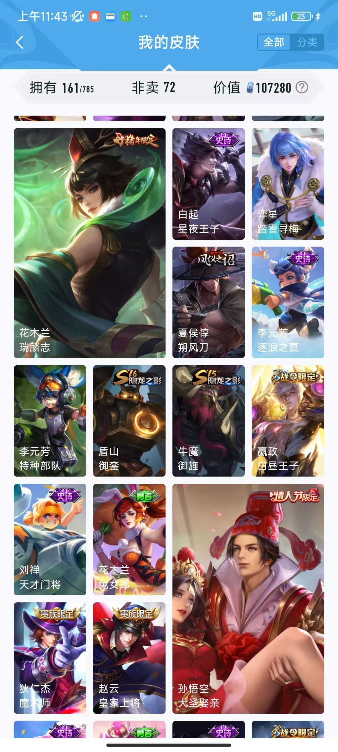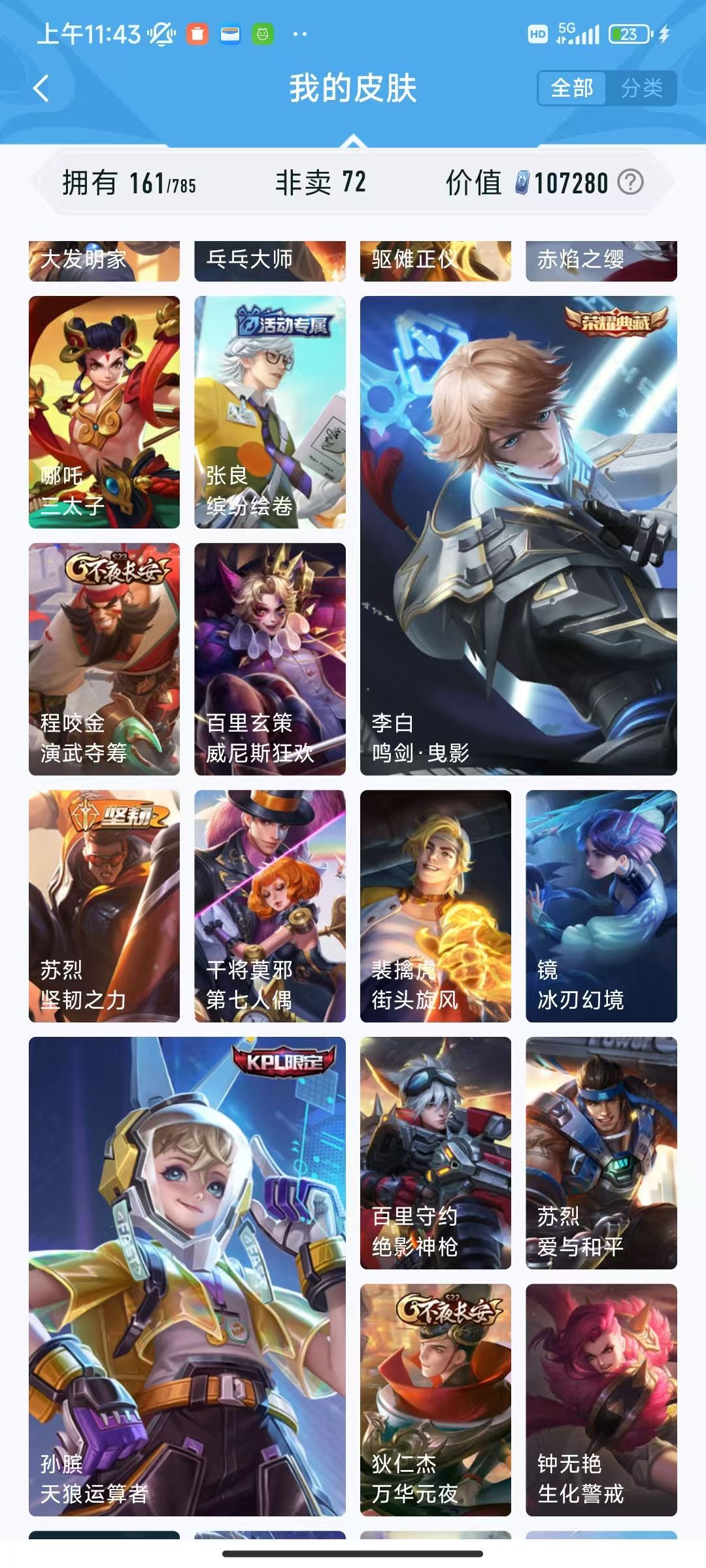 扫码上号看最后一张图🔥极品V10🔥541皮🔥李白无双皮肤🔥逐花归海🔥霜月吟🔥美少女战士🔥时之奇旅🔥满典藏🔥满传说🔥九星传说,传说天幕,多按键