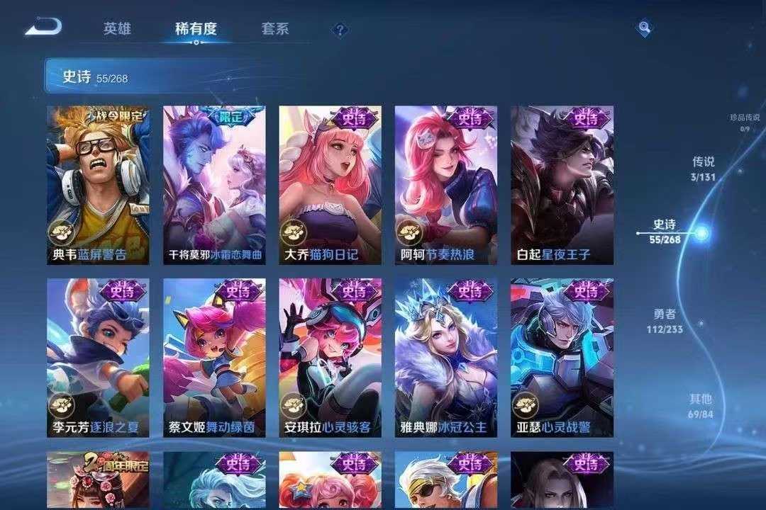 女生号 贵10 多皮肤多传说 别拿那些空号v10来比 要看性价比 貂蝉武则天夏侯惇孙悟空李白鲁班小乔荣耀水晶 妲己九尾无双皮肤 80个传说 473皮肤