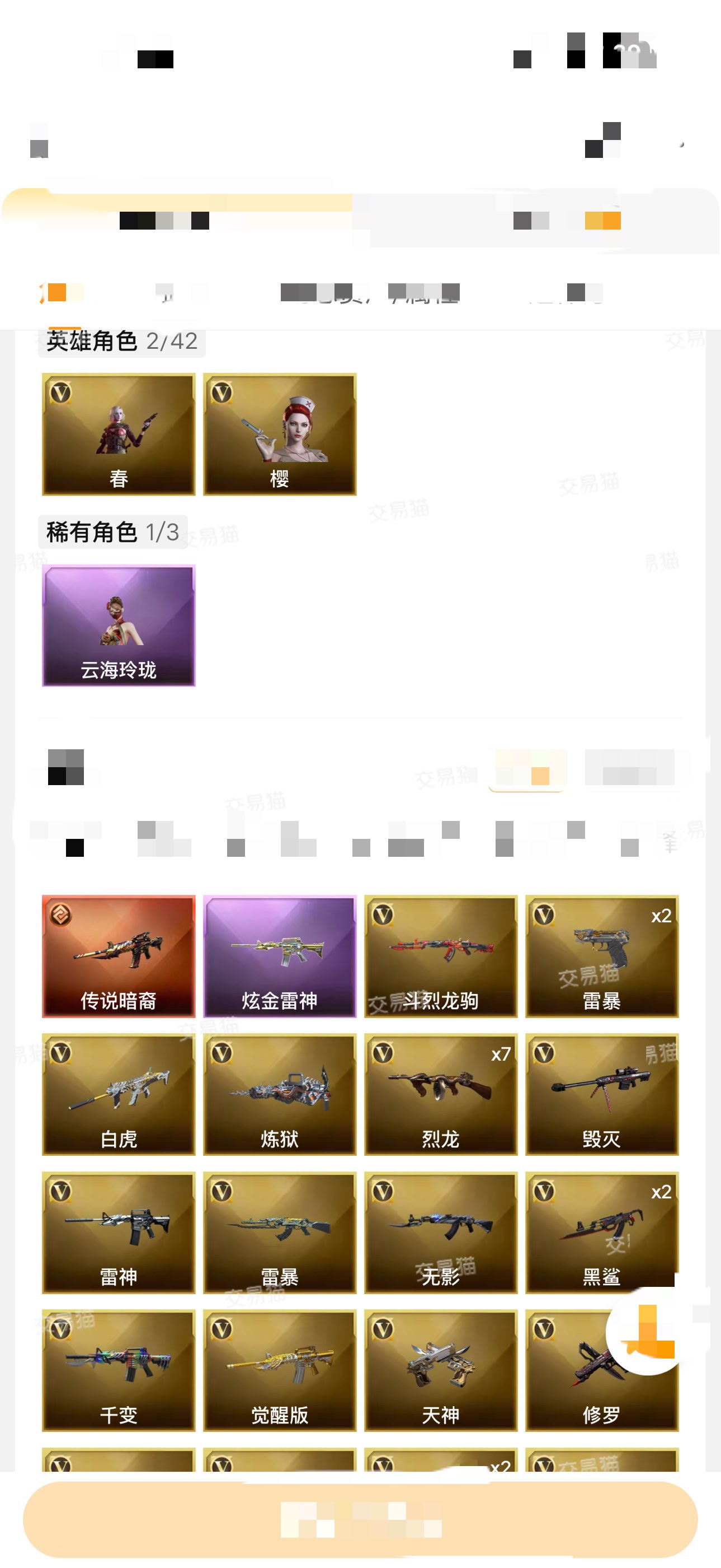 首页 > 租号大厅 > 穿越火线 > 南部/广东一区 > 7烈龙➕蝴蝶➕两个英雄角色,还有一些爆破武器