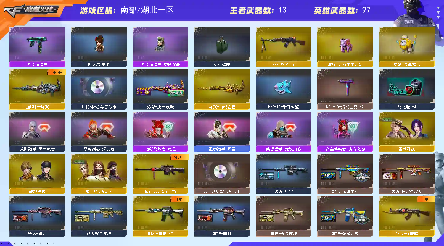 • 游戏区服:穿越火线 / 南部 / 湖北一区