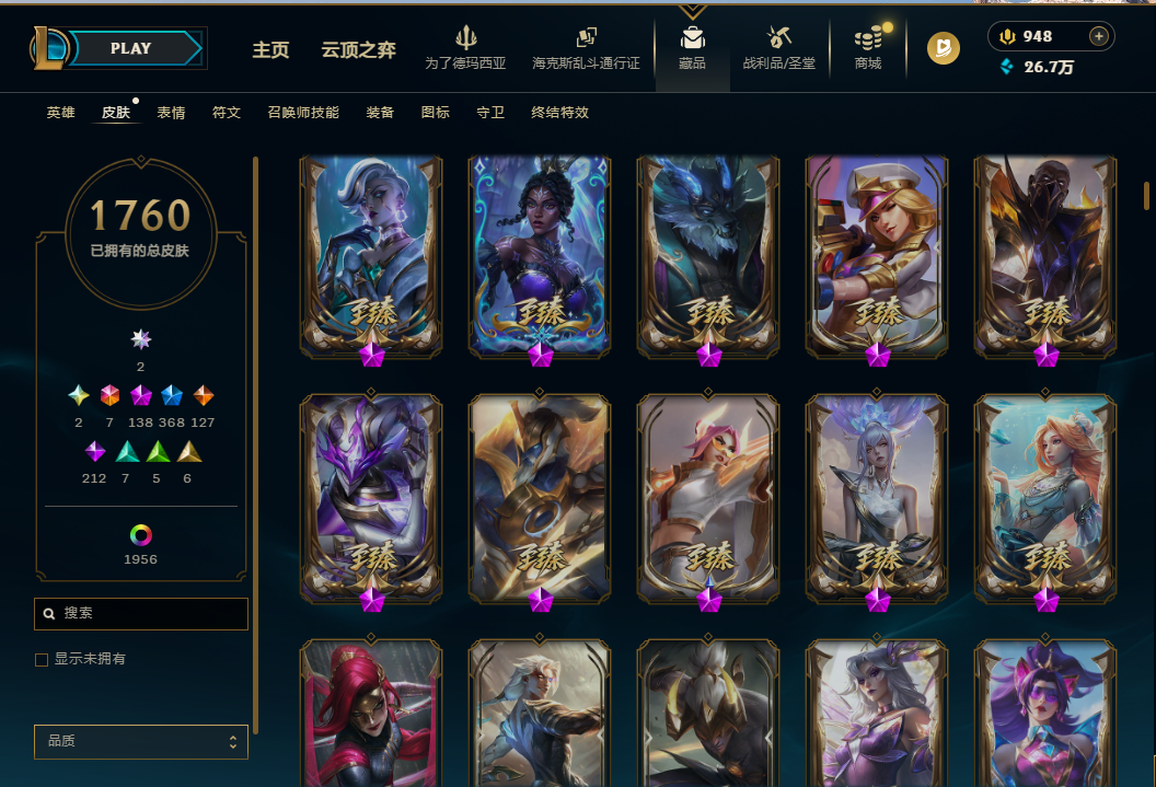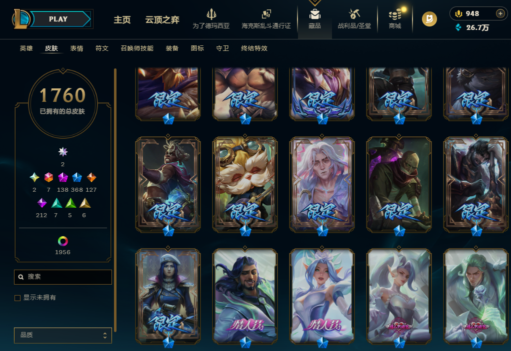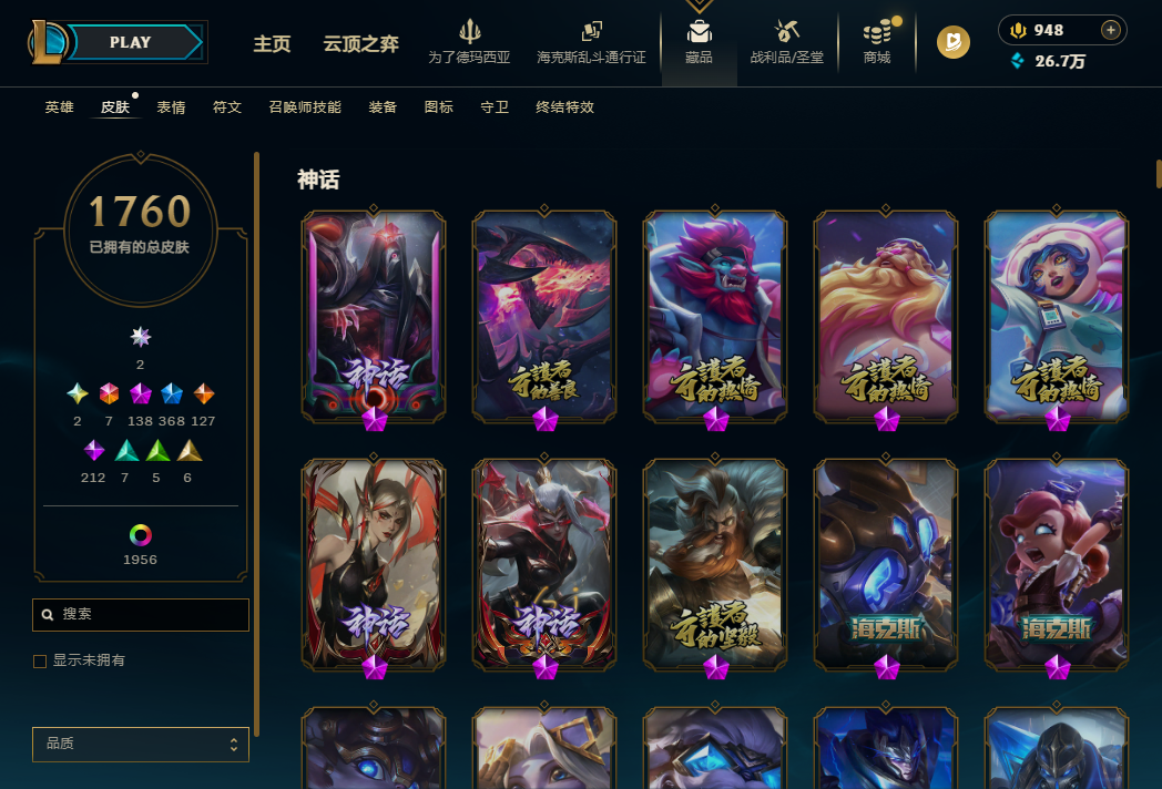 868皮肤👿 全英雄 基乎满皮肤仙剑系列 泳池系列 海克丝系列 TGA限定 花木兰