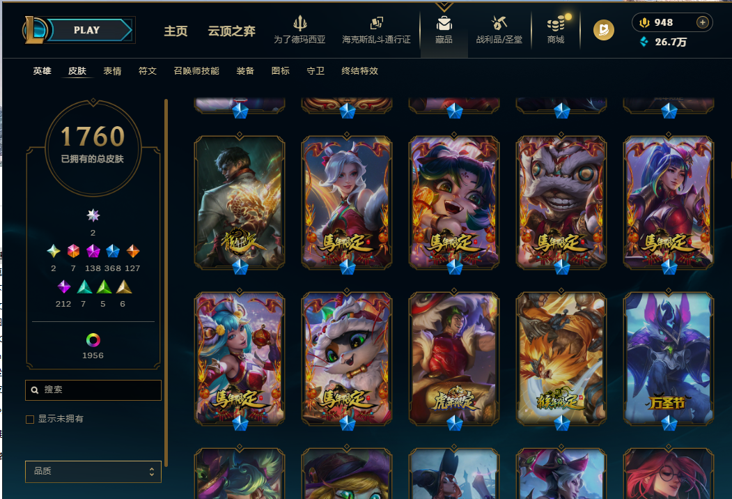 艾欧里亚女生一手号🌸满英雄1086皮肤陪老板朋友都不错龙虾摄魂vn花木全新至太千皮号龙虾各种各样皮肤都有自己看图