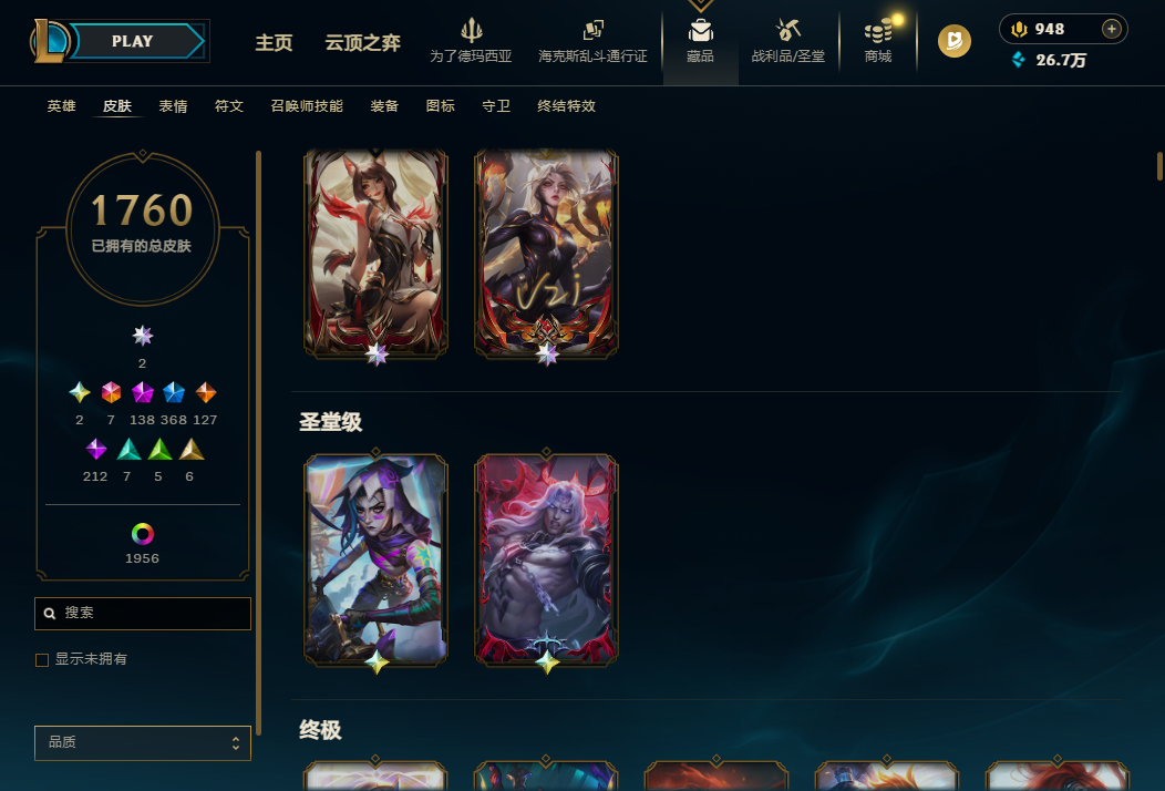 1209皮🌼黑龙瞎、哥特萝莉、斩星魔剑、4终极皮肤、154限定皮肤、25神话皮肤