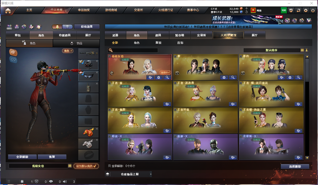 首页 > 租号大厅 > 穿越火线 > 北部/辽宁三区 > 可排位 传说女帝 幻神三件套 8音效卡 三传说 满副武器