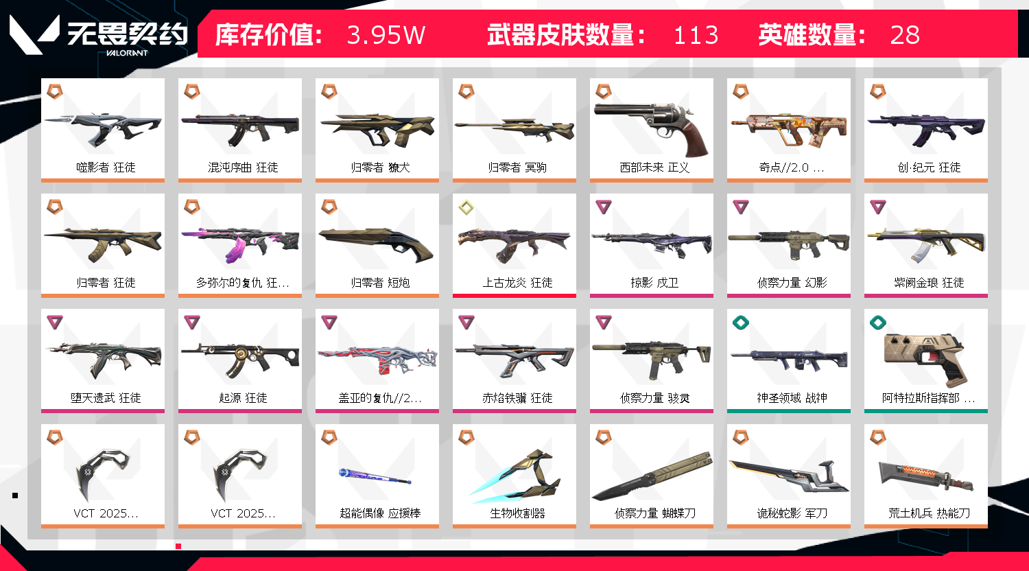 • 武器皮肤数量: 113