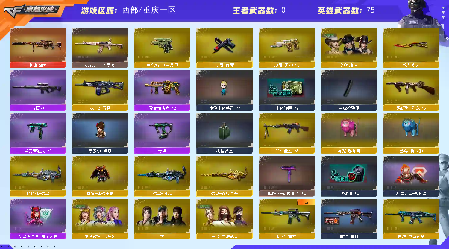 • 游戏区服:穿越火线 / 西部 / 重庆一区