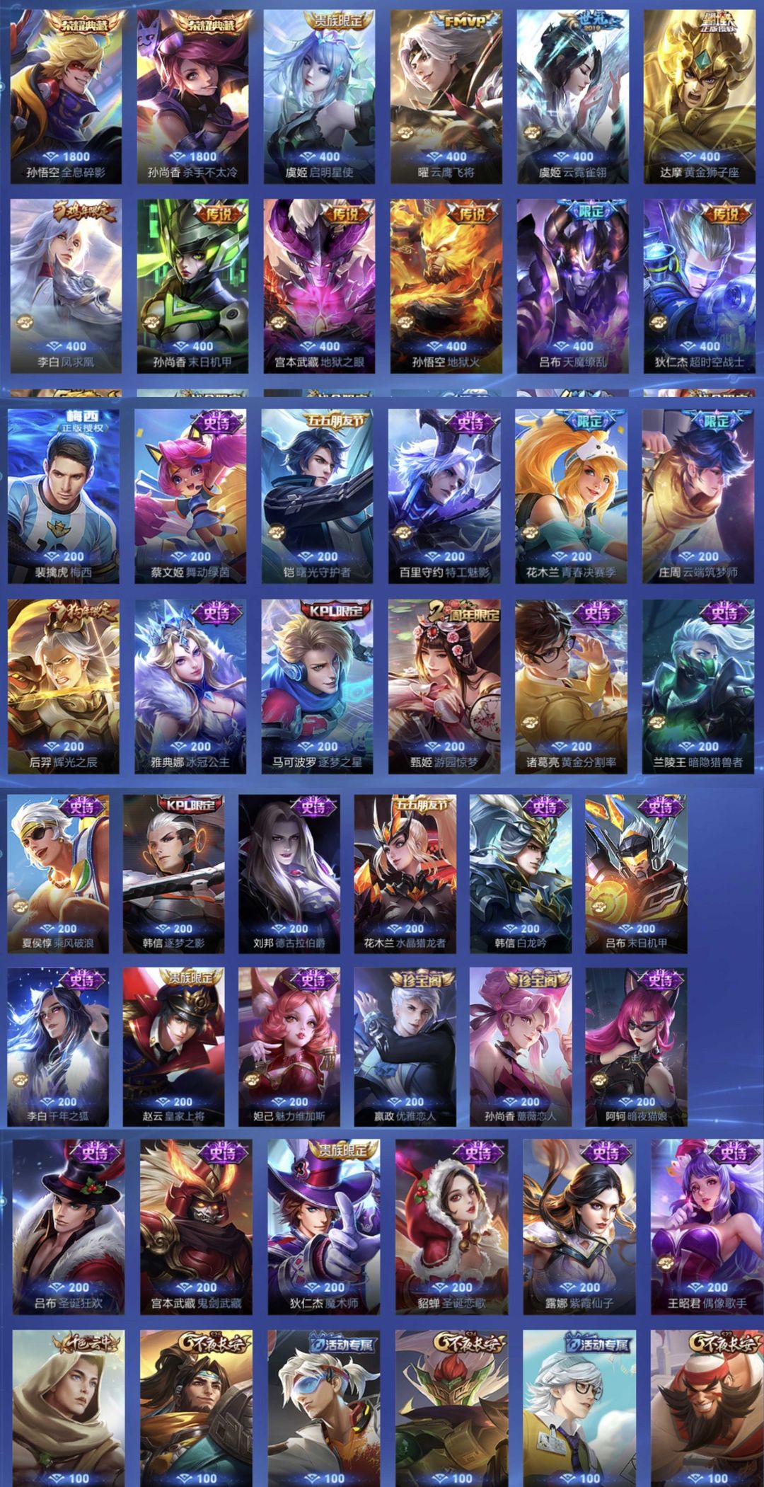 V10、550皮14水、吕布典藏-千魇归渊、云缨-神骥·越千峰、怪盗基德、伽罗星传说红枫、瑶典藏拾光映像、冥王哈迪斯、、龙年限定、齐天大圣