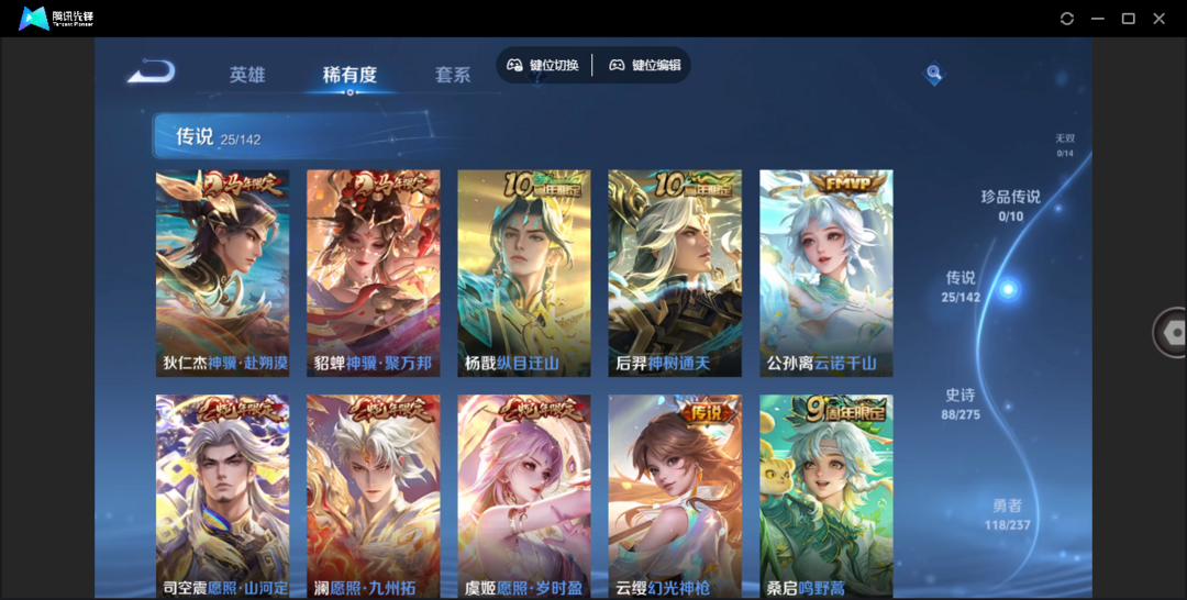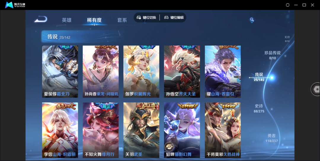 【非云直上】V10★皮肤榜一★539皮满典藏★鲁班时之奇旅会员★虞姬黛羽霜翎星元★吕布白金战神★全能大师★多金标★个性按键