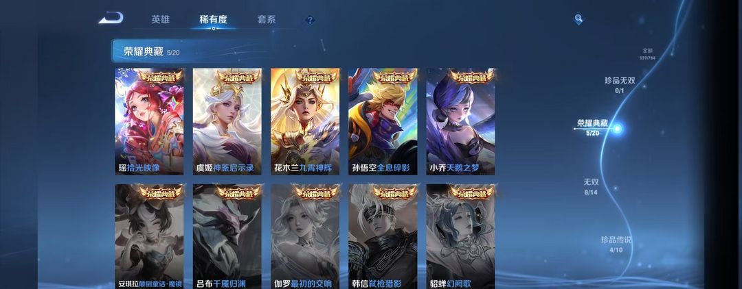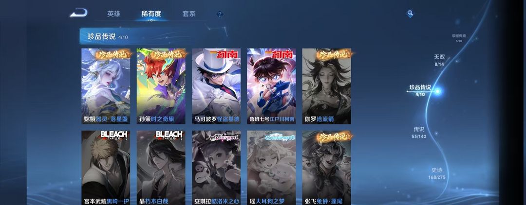 V10、550皮14水、吕布典藏-千魇归渊、云缨-神骥·越千峰、怪盗基德、伽罗星传说红枫、瑶典藏拾光映像、冥王哈迪斯、、龙年限定、齐天大圣