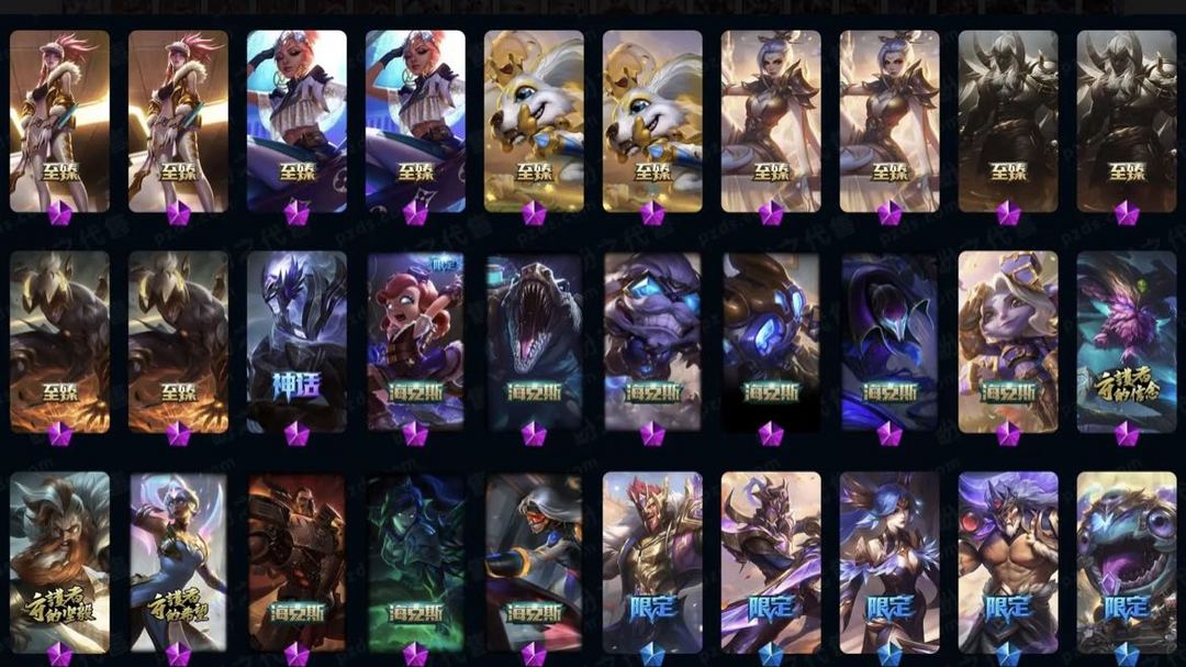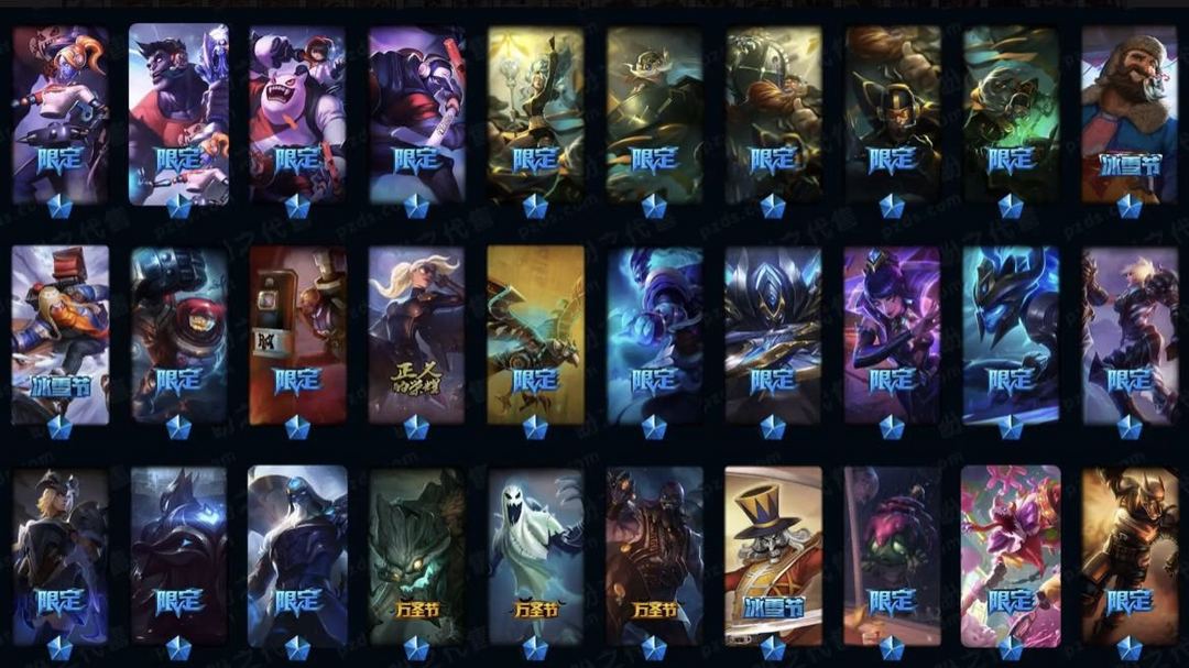 真实2031皮/89神话/龙瞎+蓝炫/哥特萝莉/龙猴+龙刀+龙琴/情人节全套/原计划全套/IG冠军限定/FPX冠军限定/200多限定/每个英雄都有全有/看图