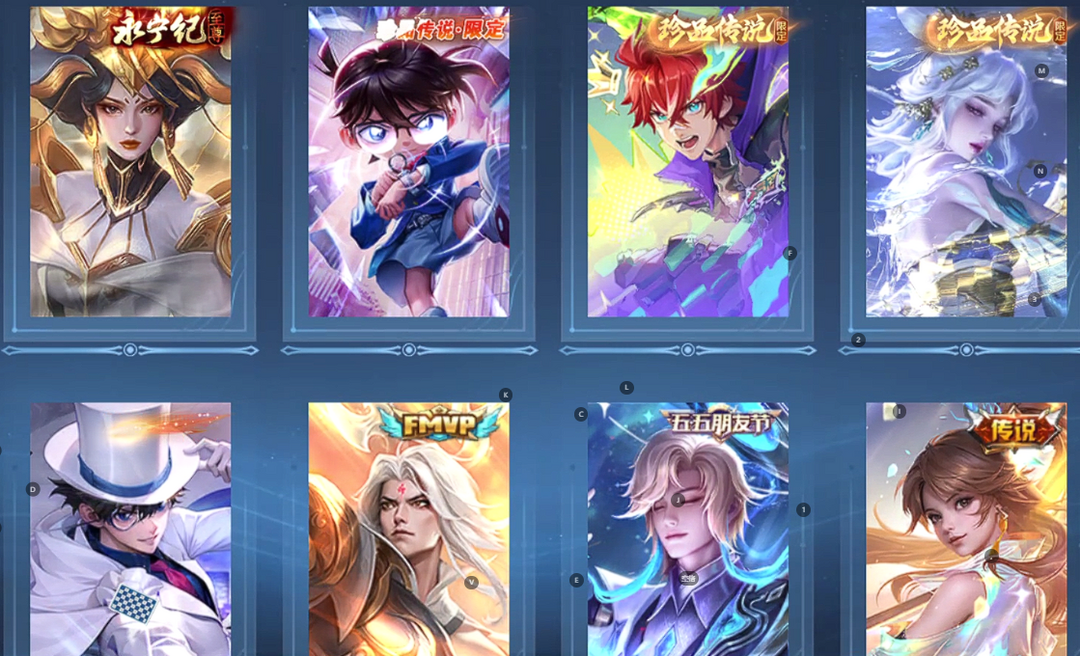 V10、550皮14水、吕布典藏-千魇归渊、云缨-神骥·越千峰、怪盗基德、伽罗星传说红枫、瑶典藏拾光映像、冥王哈迪斯、、龙年限定、齐天大圣