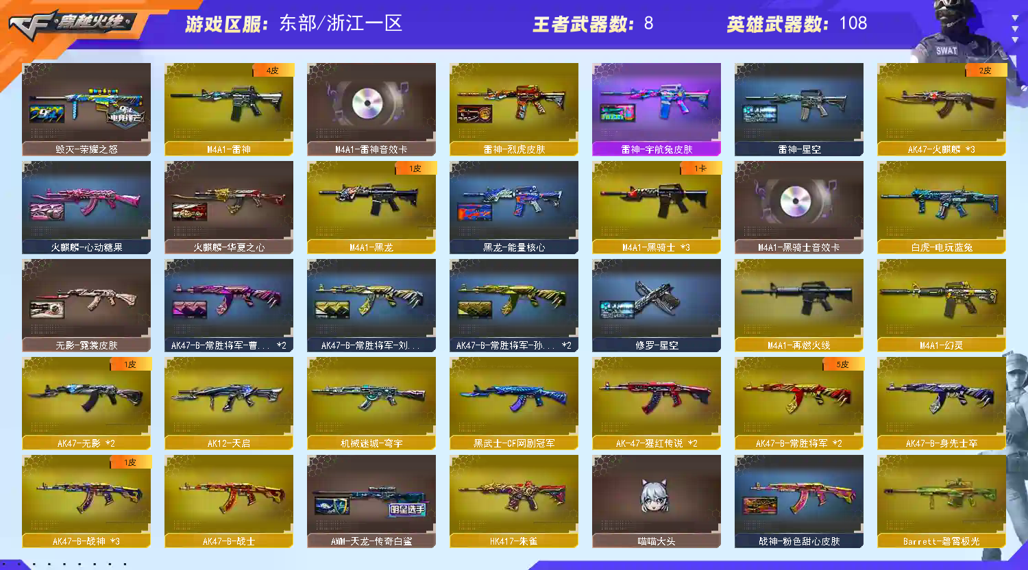 • 游戏区服:穿越火线 / 东部 / 浙江一区