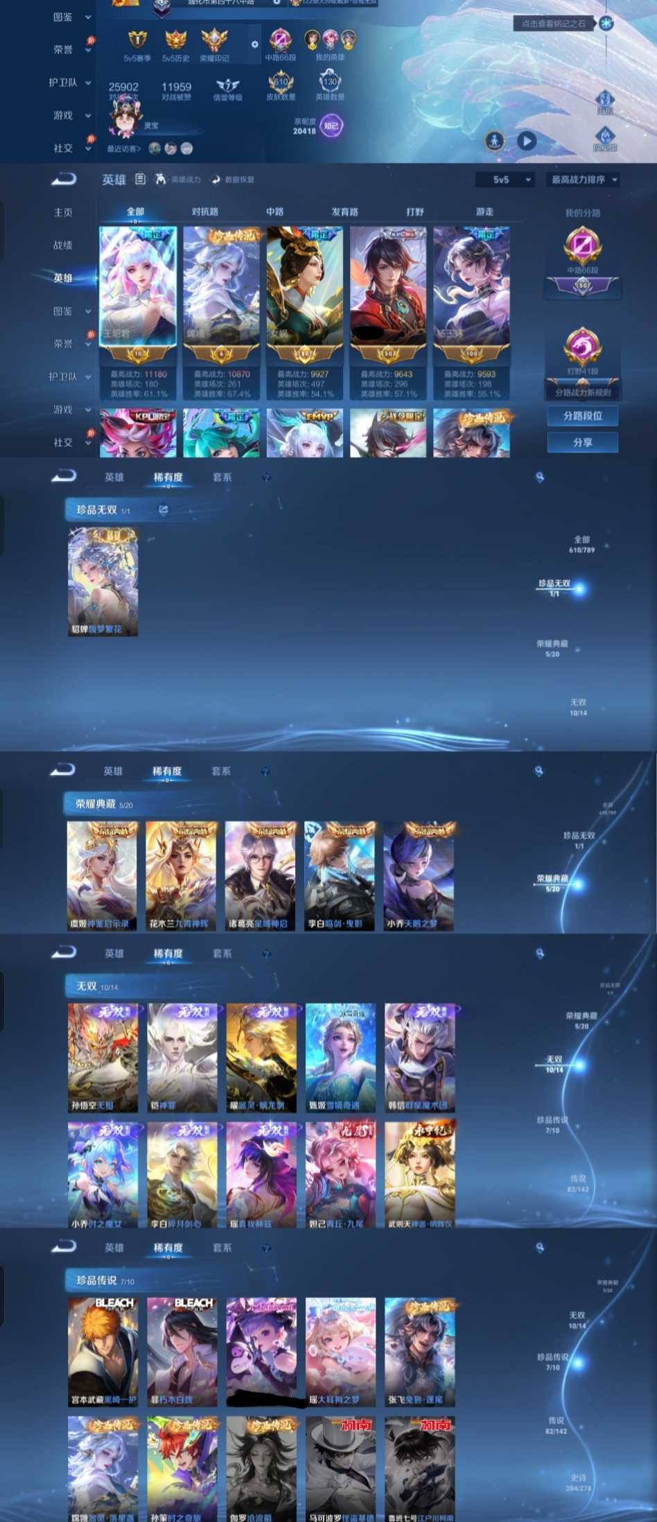 女生号 贵10 多皮肤多传说 别拿那些空号v10来比 要看性价比 貂蝉武则天夏侯惇孙悟空李白鲁班小乔荣耀水晶 妲己九尾无双皮肤 80个传说 473皮肤