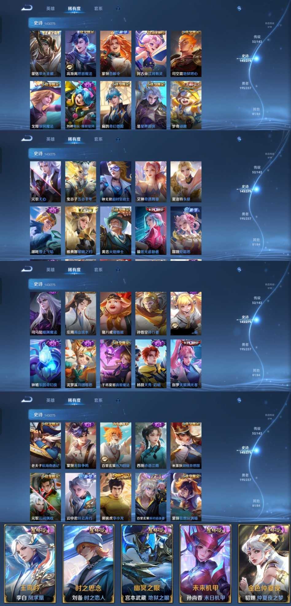 【非云直上】V10★皮肤榜一★539皮满典藏★鲁班时之奇旅会员★虞姬黛羽霜翎星元★吕布白金战神★全能大师★多金标★个性按键