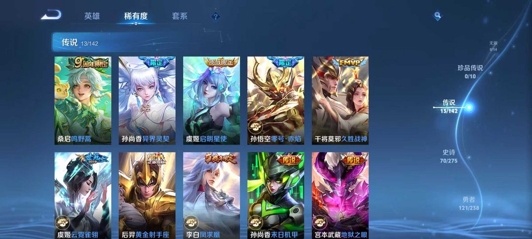 女生号 贵10 多皮肤多传说 别拿那些空号v10来比 要看性价比 貂蝉武则天夏侯惇孙悟空李白鲁班小乔荣耀水晶 妲己九尾无双皮肤 80个传说 473皮肤