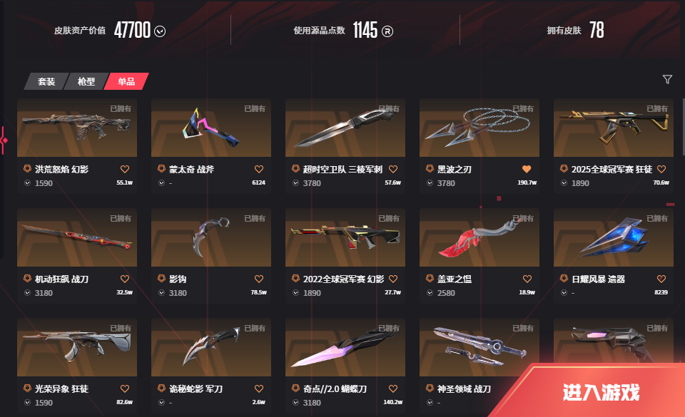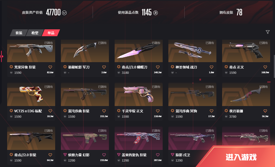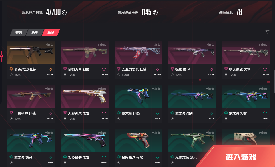 • 武器皮肤数量: 78