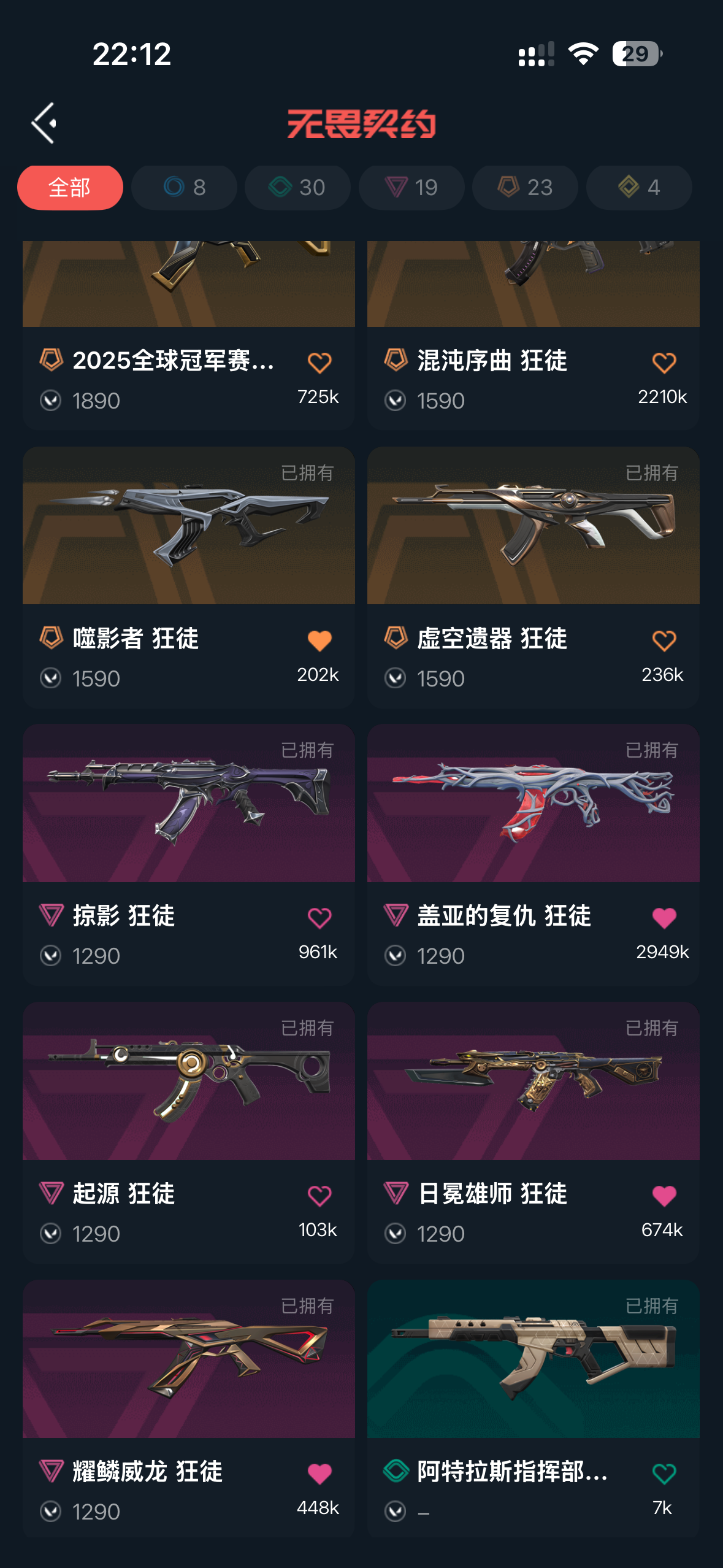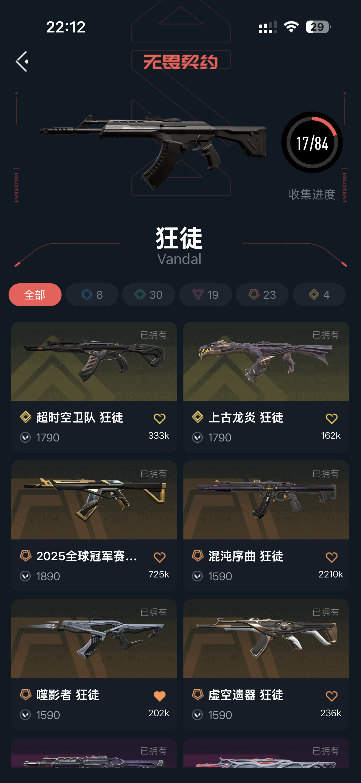 7.2万库存超时空卫队全套 神中神罚全套 虚空遗器全套 掠影3.0全套 狮子AK 起源AK 噬影者AK 盖亚ak 掠影ak 混沌ak 上古龙炎ak 25冠军ak 威龙ak 侦查幻影 神中神罚幻影 混沌大狙 紫金戍卫;VCT 2025 爪刀,盖亚的复仇 狂徒,虚空遗器 狂徒,噬影者 狂徒,掠影 狂徒,侦察力量 幻影,混沌序曲 狂徒,